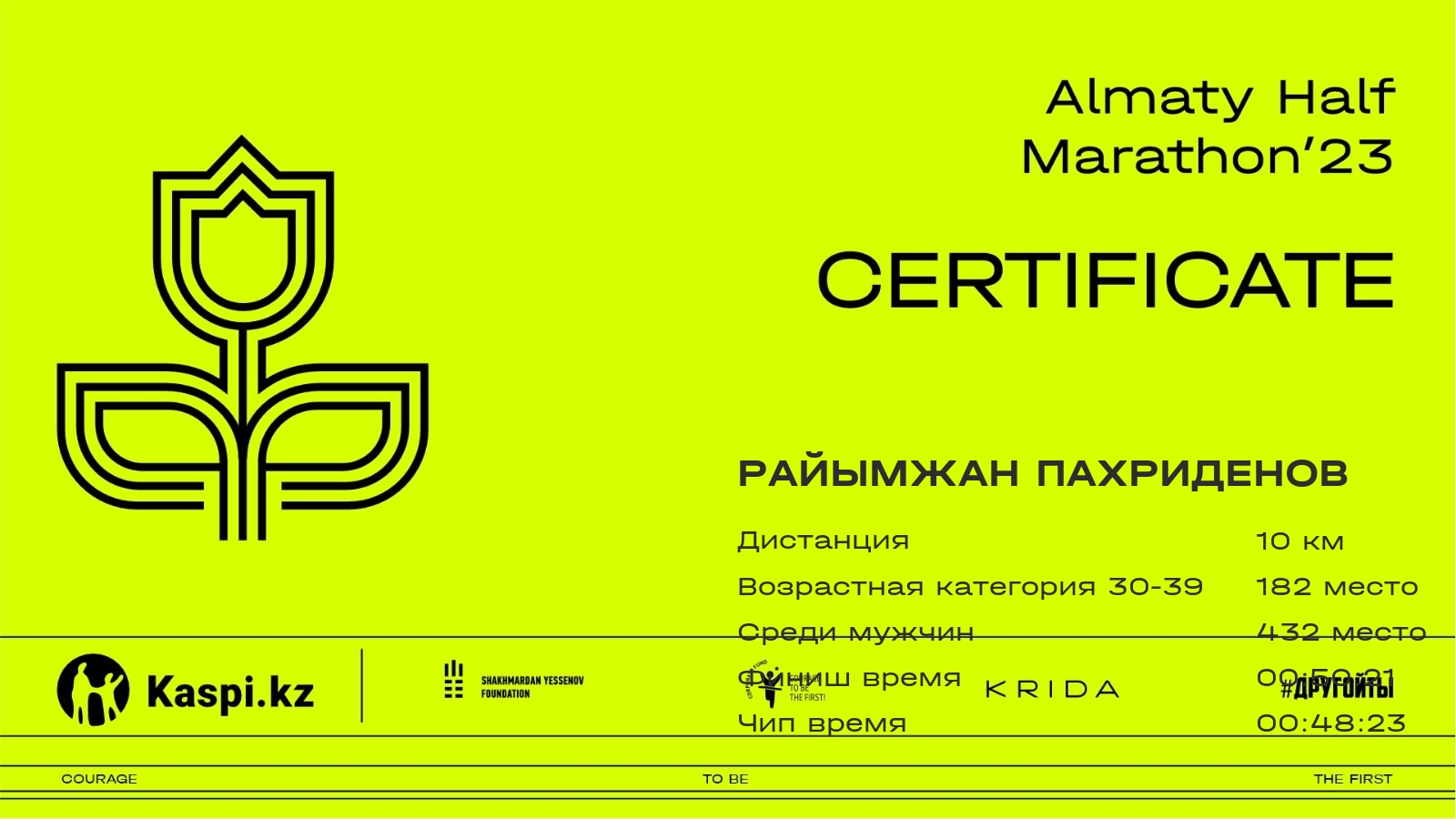 | 511 | Ербол Курмашев | ![]() | Алматы | 4175 | 00:33:25.98 | 00:49:55.10 | 00:49:49.91 | Скачать |
