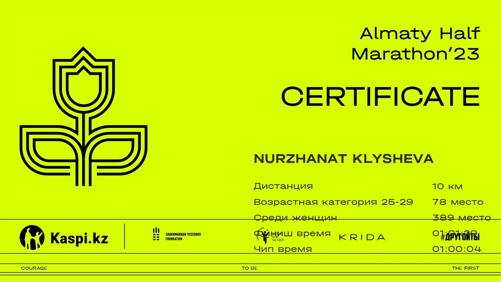 | 1655 | Nurzhan Nazhmidenov | ![]() | Almaty | 4652 | 00:41:31.95 | 01:03:25.97 | 01:02:38.97 | Скачать |