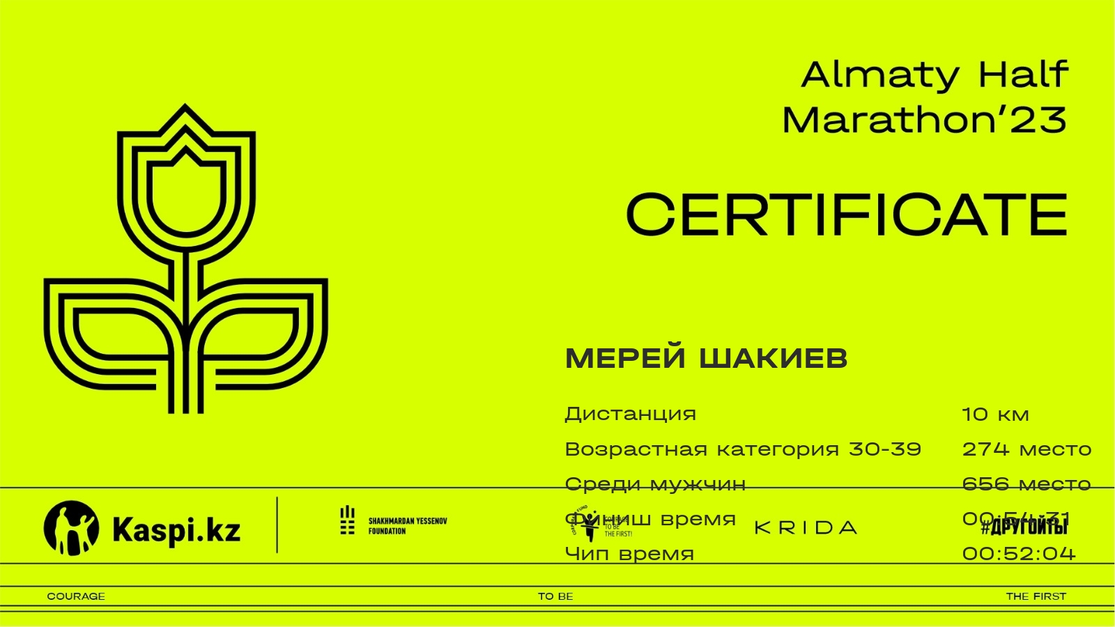 | 823 | Мерей Шакиев | ![]() | Алматы | 5739 | 00:37:02.76 | 00:54:31.90 | 00:52:04.72 | Скачать |