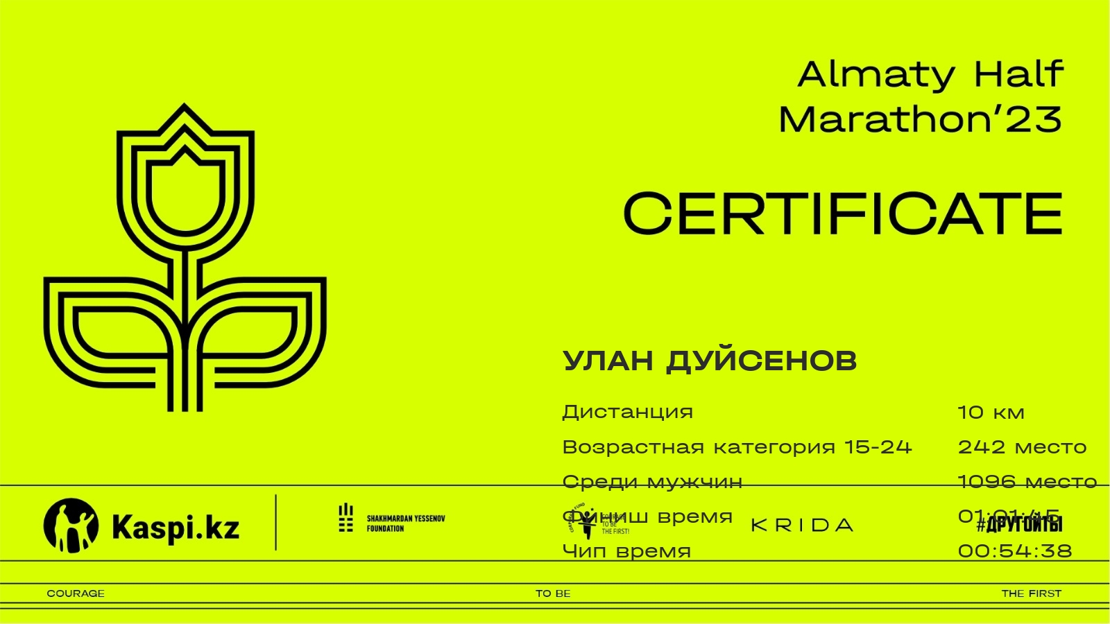 | 632 | Улан Коспан | ![]() | Алматы | 4495 | 00:34:46.75 | 00:51:56.34 | 00:51:13.26 | Скачать |