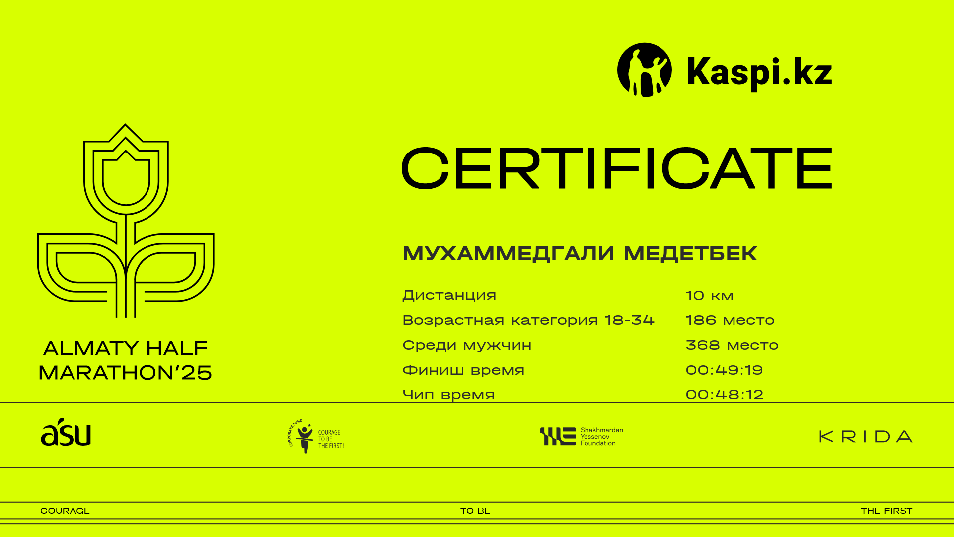 | 456 | Daulet Meirbekov | ![]() | Алматы | 8414 | 00:32:16 | 00:49:15 | 00:48:34 | Скачать |