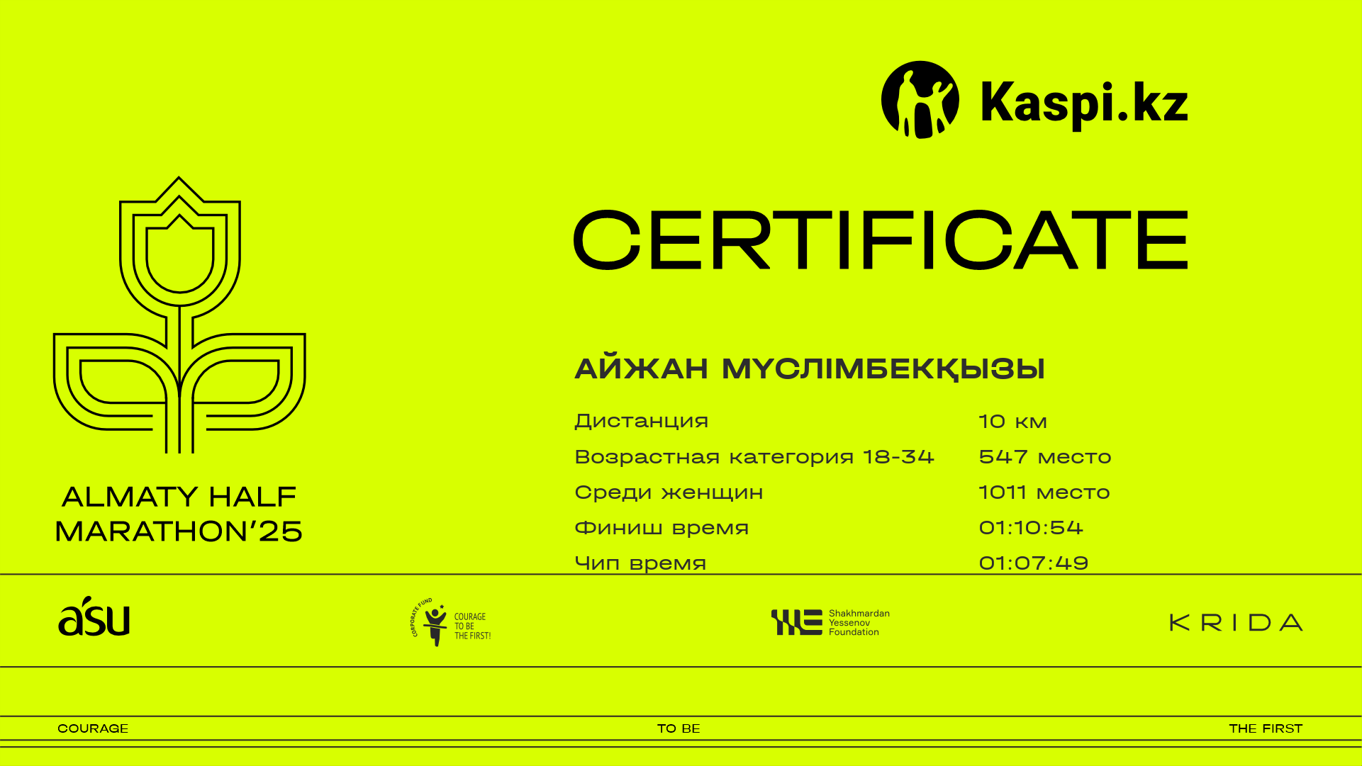 | 5045 | Арайлым Аралбай | ![]() | Алматы | 8174 | 01:12:01 | 01:49:34 | 01:45:08 | Скачать |