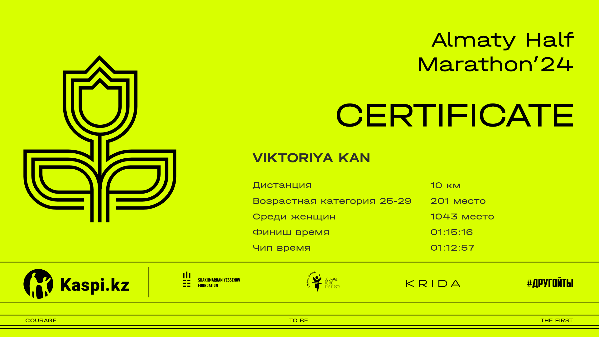 | 1672 | Venera Kumekbayeva | ![]() | Алматы | 6244 | 00:41:42 | 01:03:00 | 01:02:51 | Скачать |