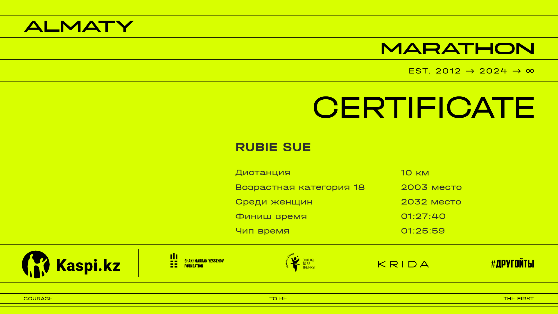| 4674 | Алимжан Али | ![]() | Алматы | 3690 | 01:04:53.90 | 01:27:32.25 | 01:25:53.75 | Скачать |