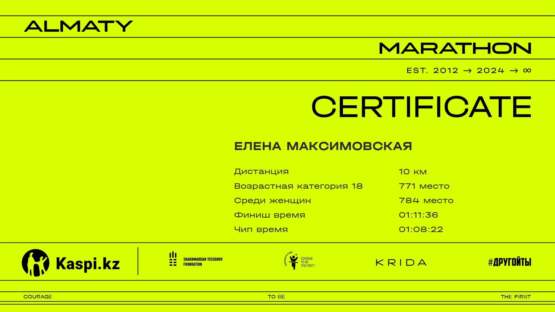| 3863 | Ольга Эм | ![]() | Алматы | 4358 | 00:58:58.02 | 01:19:34.14 | 01:18:15.91 | Скачать |