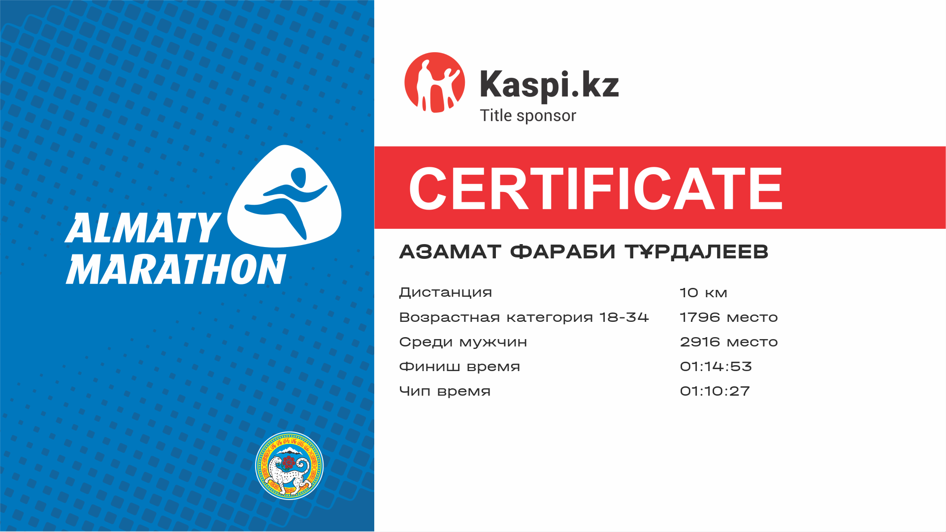 | 5441 | Диана Диятильда | ![]() | Алматы | 10480 | 01:01:59 | 01:23:51 | 01:19:22 | Скачать |