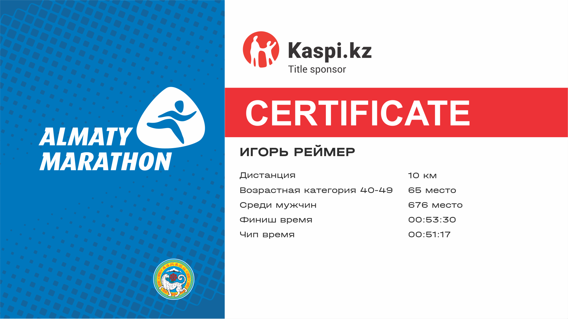 | 759 | Дамир Бурханов | ![]() | Алматы | 13389 | 00:40:10 | 00:53:27 | 00:52:33 | Скачать |