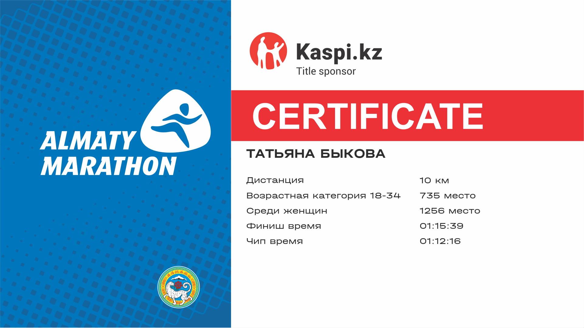 | 5646 | Тастулекова Айнур | ![]() | Алматы | 9700 | 01:03:20 | 01:25:42 | 01:22:41 | Скачать |
