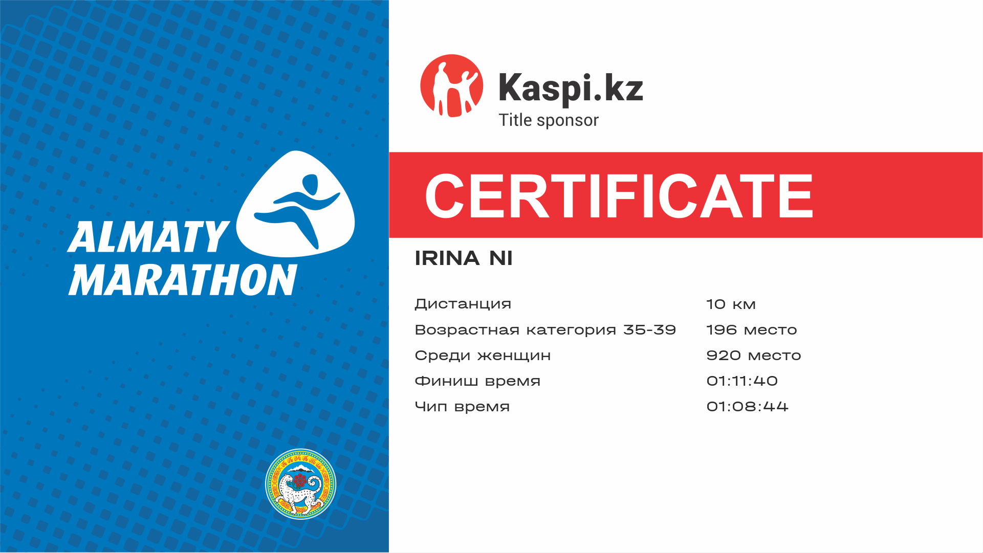| 5745 | Дина Тунгатарова | ![]() | Алматы | 6970 | 01:04:44 | 01:26:30 | 01:25:08 | Скачать |