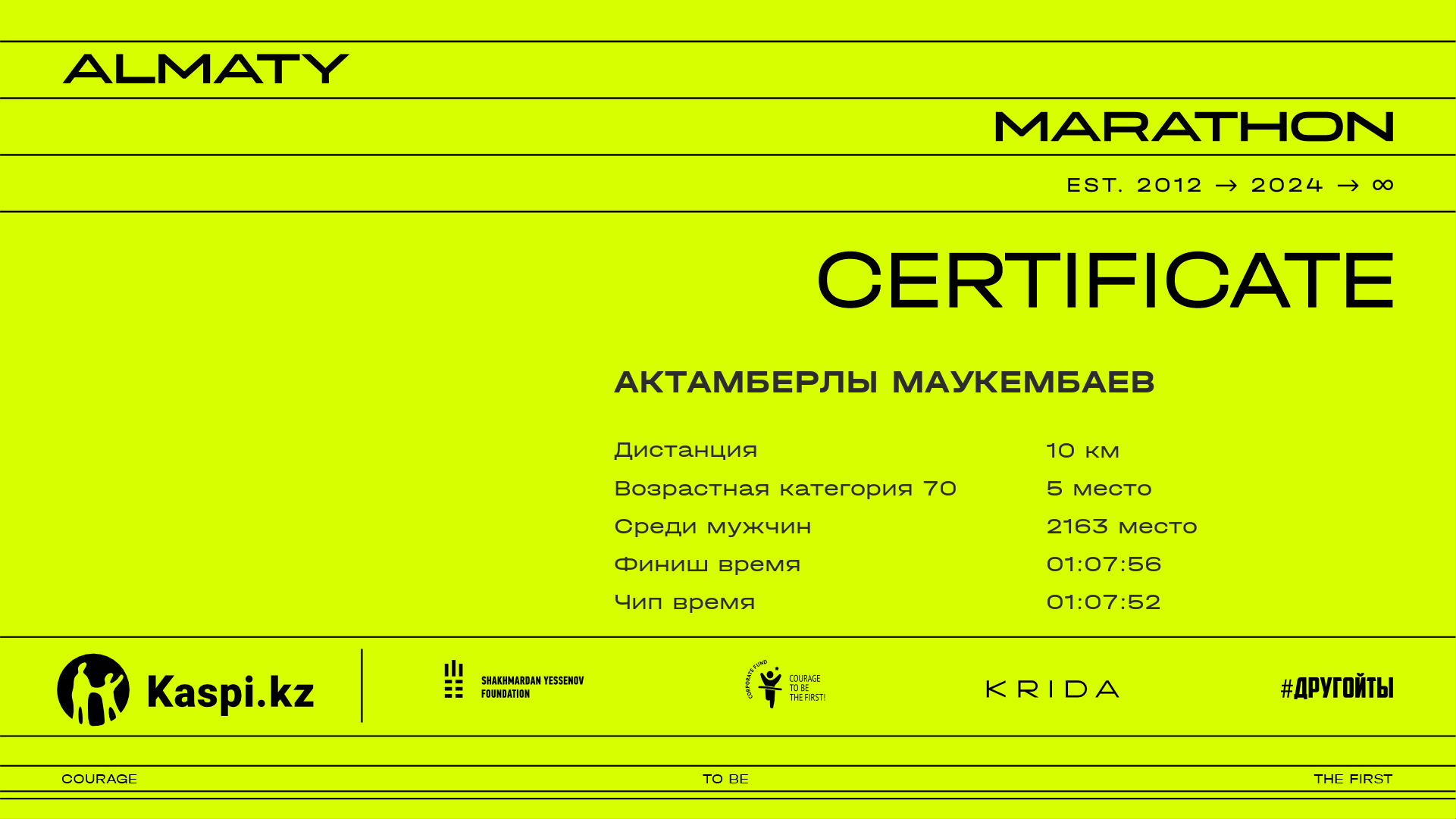 | 7689 | Тахир Жораев | ![]() | Алматы | 10377 | 01:31:48.69 | 01:41:44.81 | 01:39:12.87 | Скачать |