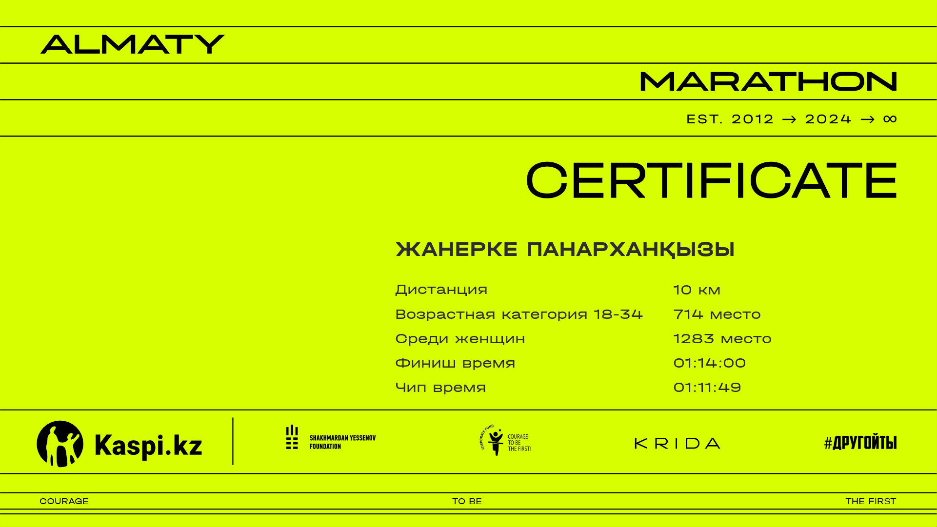 | 1907 | Елшат Ержан | ![]() | Алматы | 8188 | 00:55:09.76 | 01:02:37.50 | 01:00:11.28 | Скачать |