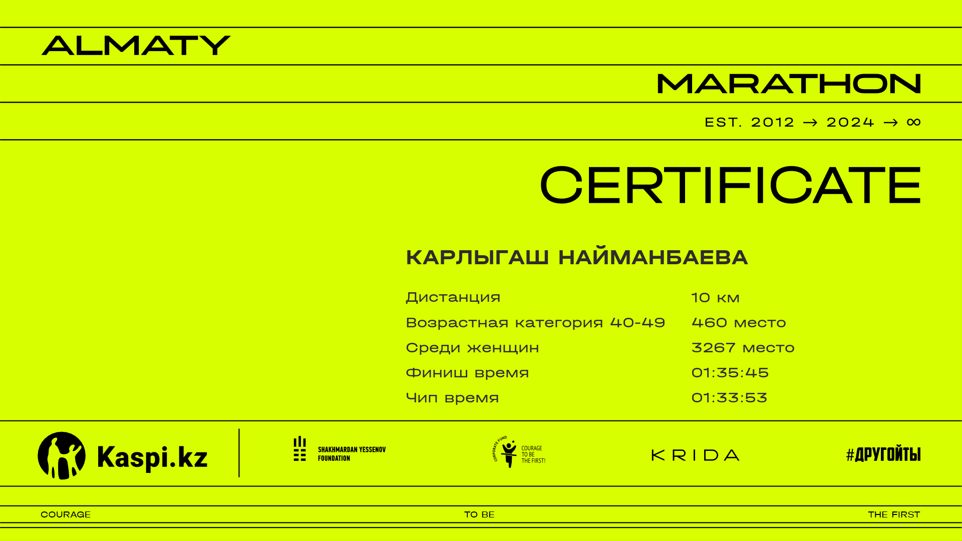 | 7517 | Erbol Zhumaganbetov | ![]() | Алматы | 12984 | 01:27:19.85 | 01:38:17.15 | 01:34:02.68 | Скачать |