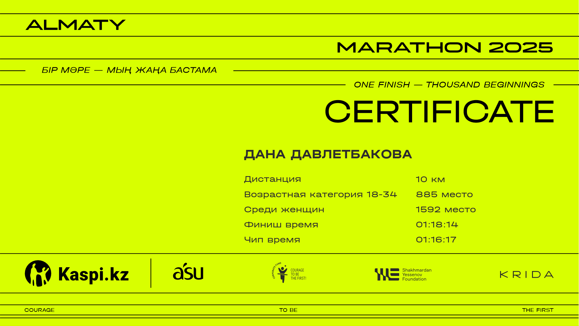 | 5358 | Архат Укубаев | ![]() | Алматы | 13463 | 01:14:04 | 01:25:18 | 01:24:15 | Скачать |
