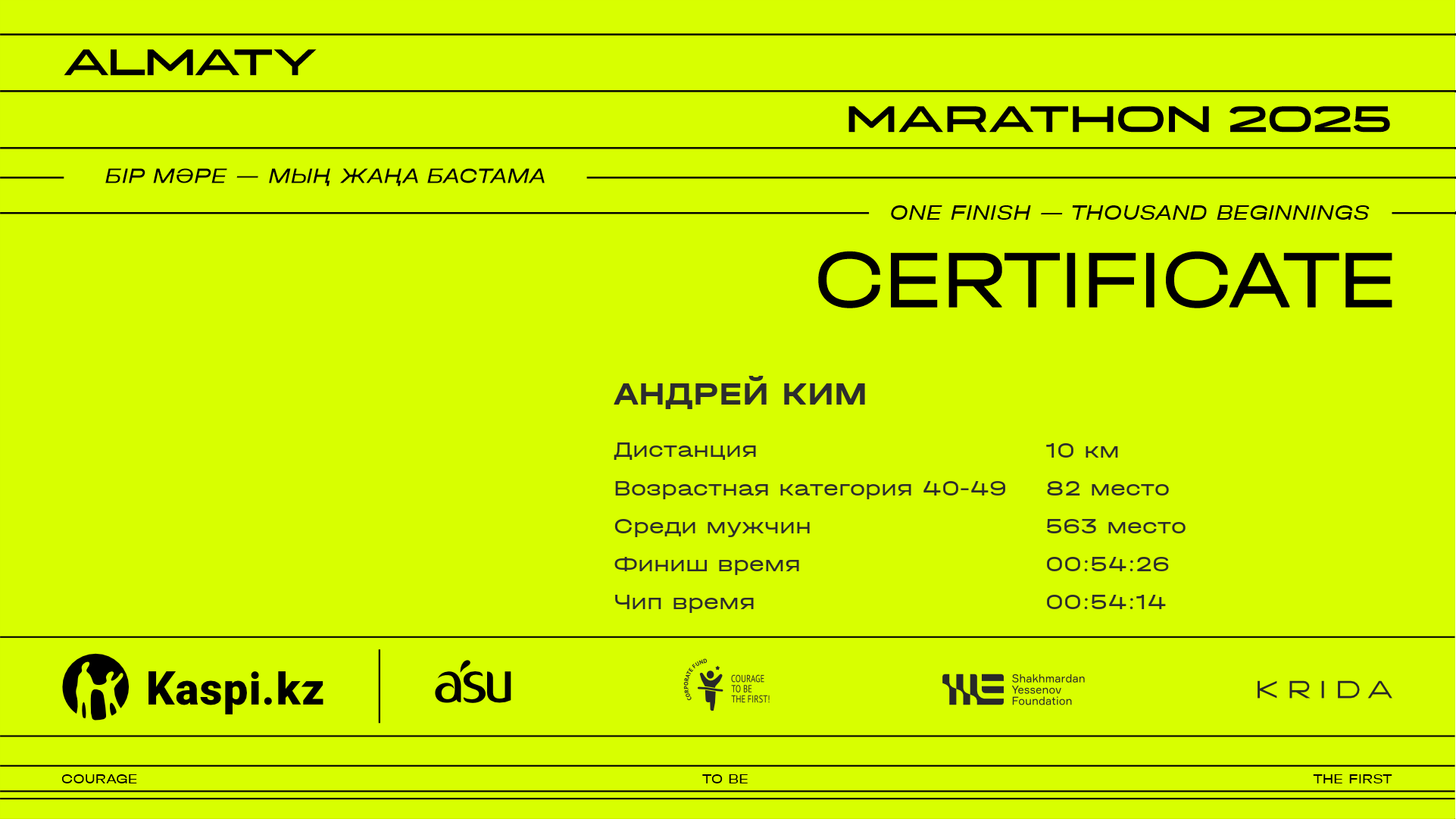 | 3329 | Санжар Оразбаев | ![]() | Алматы | 6665 | 01:02:25 | 01:13:00 | 01:11:32 | Скачать |