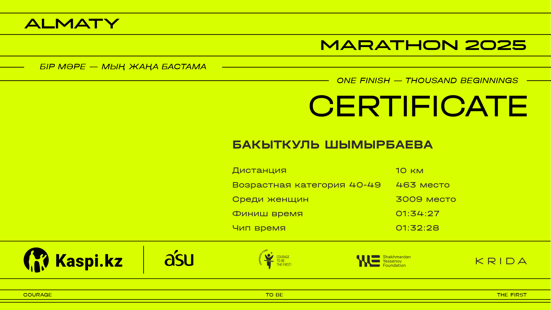 | 6272 | Maral Issen | ![]() | Алматы | 8128 | 01:22:18 | 01:34:41 | 01:33:53 | Скачать |