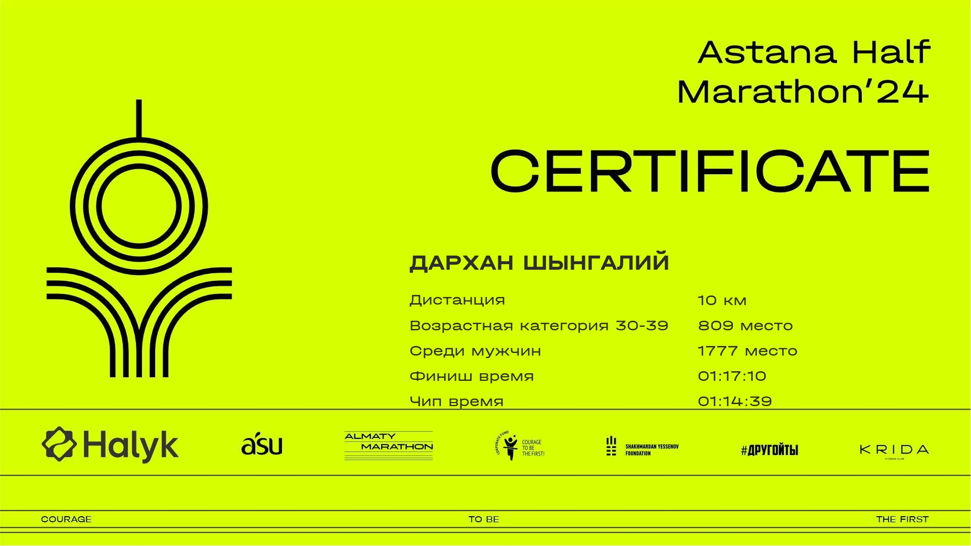 | 2577 | Дархан Шынгалий | ![]() | Астана | 5237 | 00:27:27.29 | 01:08:03.25 | 01:17:10.56 | 01:14:39.04 | Скачать |