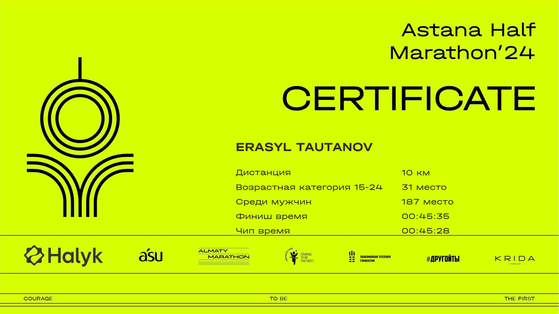 | 213 | Erasyl Tautanov | ![]() | Астана | 3305 | 00:14:11.63 | 00:40:55.74 | 00:45:35.74 | 00:45:28.81 | Скачать |