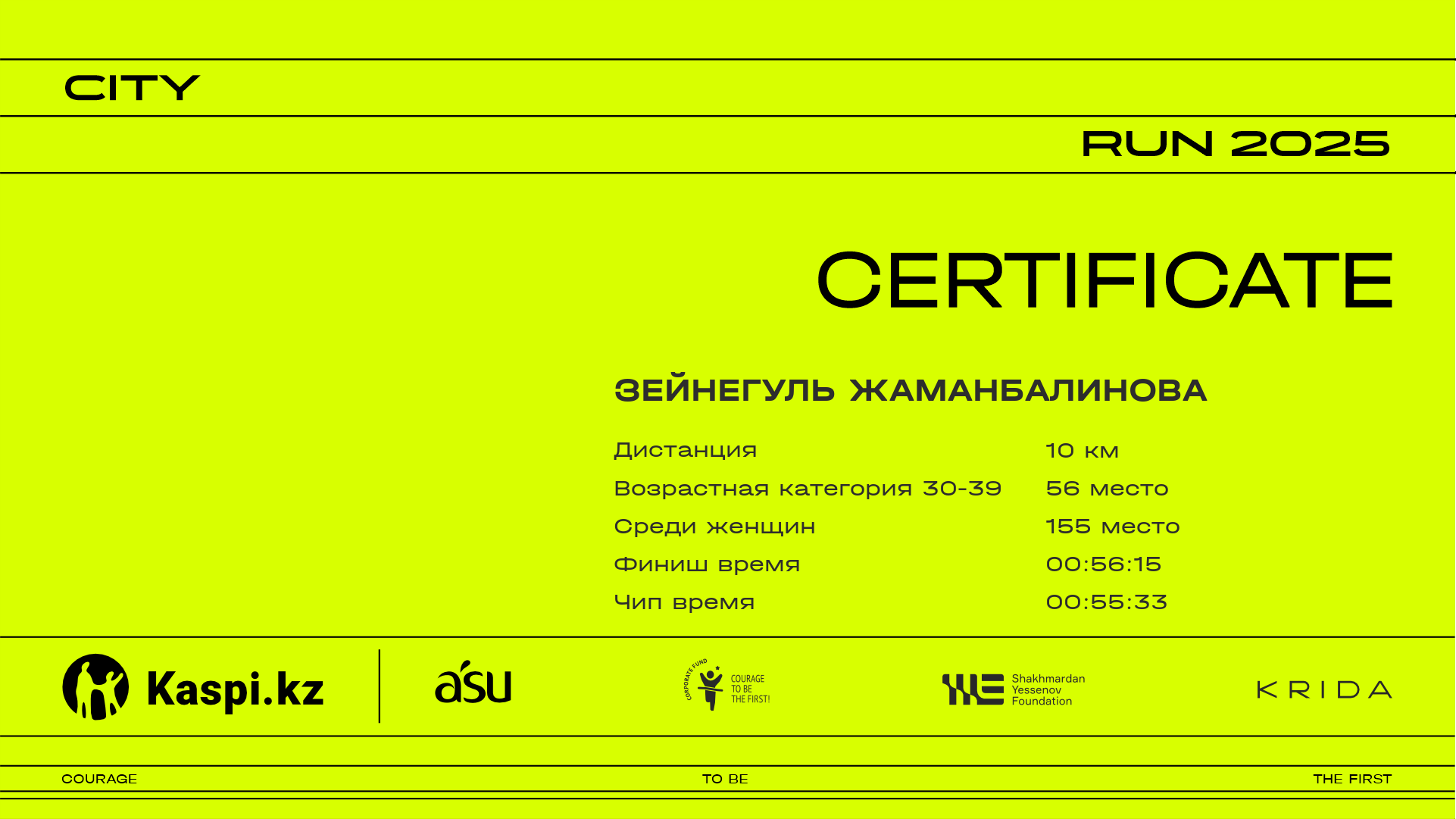 МестоУчастникСтранаГородНомер2.52 km4.37 km6.4 km8.43 km9.84 kmФинишЧип времяСертификат