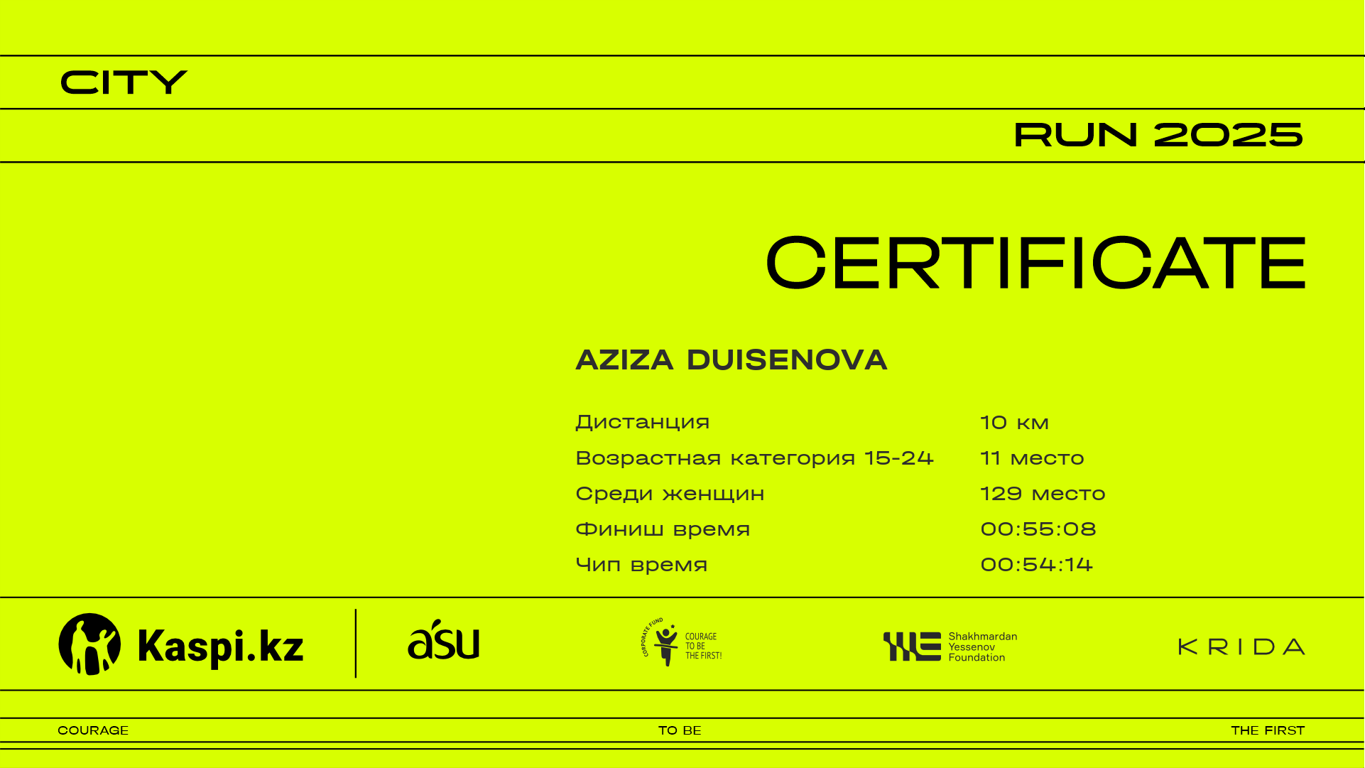 | 1060 | Assel Kulybekova | ![]() | Almaty | 787 | 00:15:57 | 00:27:06 | 00:39:23 | 00:51:40 | 01:00:48 | 01:01:59 | 01:01:34 | Скачать |