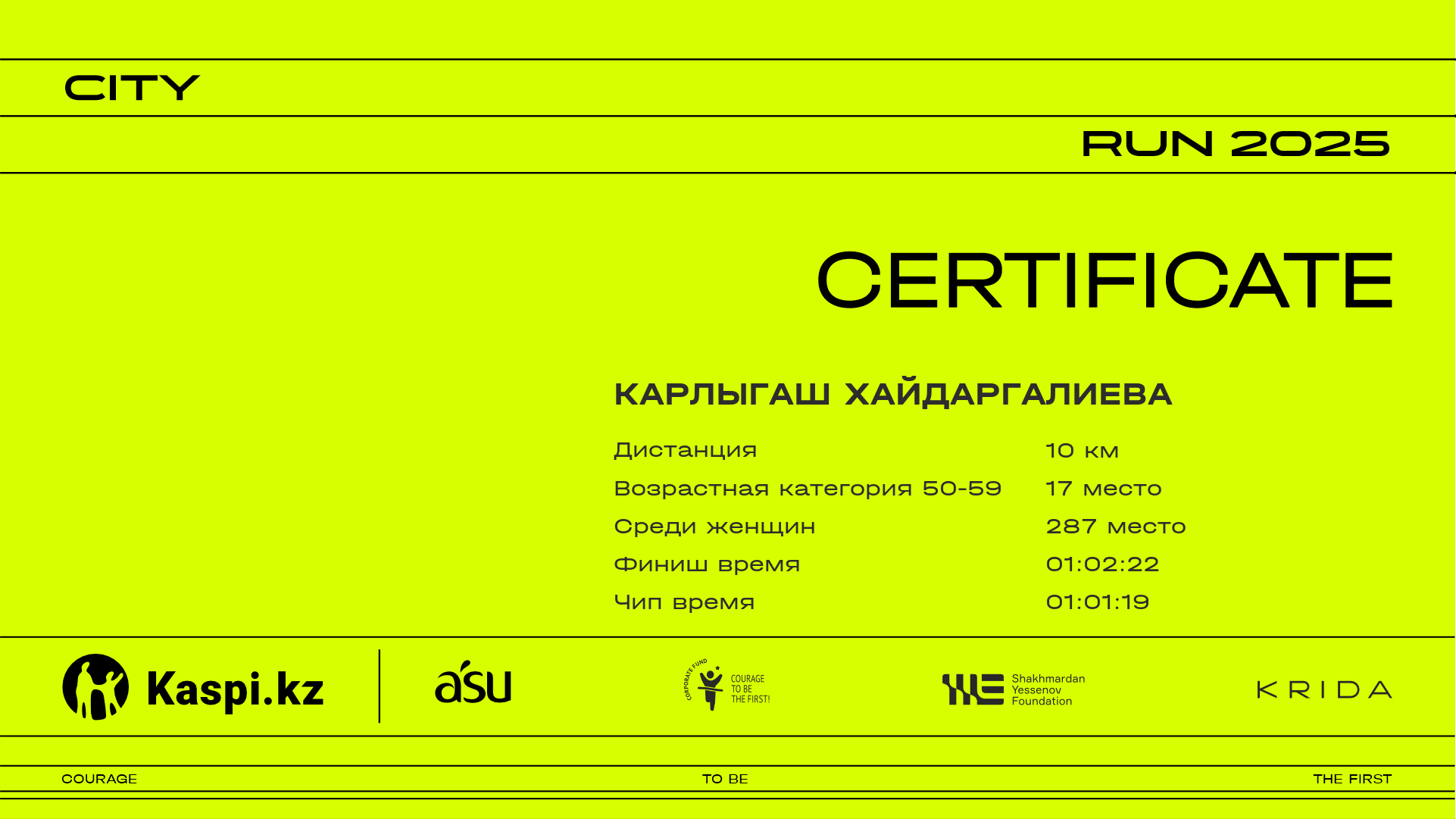 | 1788 | Кристина Ким | ![]() | Алматы | 474 | 01:21:14 | 01:22:59 | 01:21:36 | Скачать | ||||