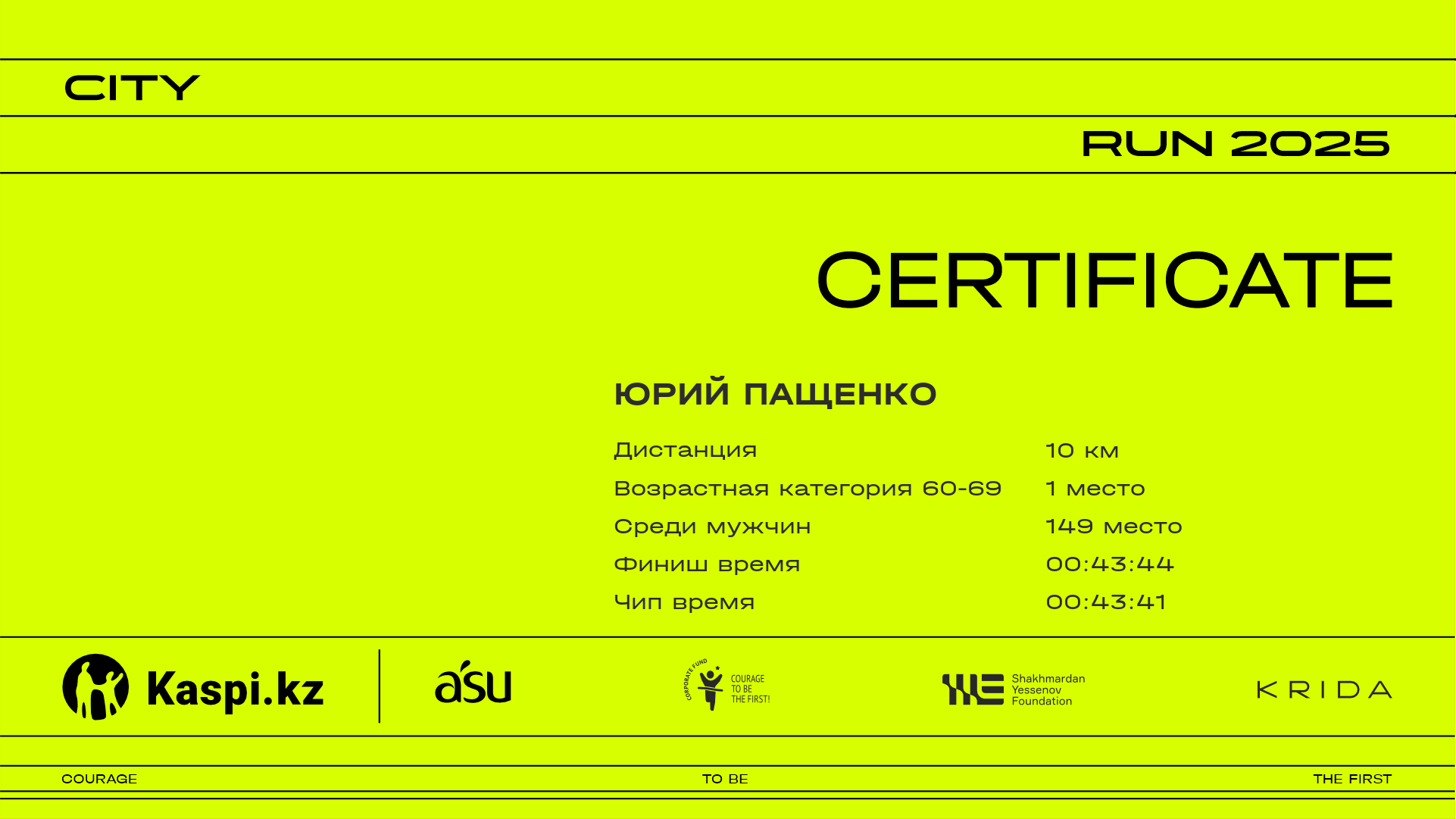 | 169 | Yeldos Temirgaliyev | ![]() | Алматы | 954 | 00:11:18 | 00:19:00 | 00:27:31 | 00:36:15 | 00:42:48 | 00:43:47 | 00:43:38 | Скачать |