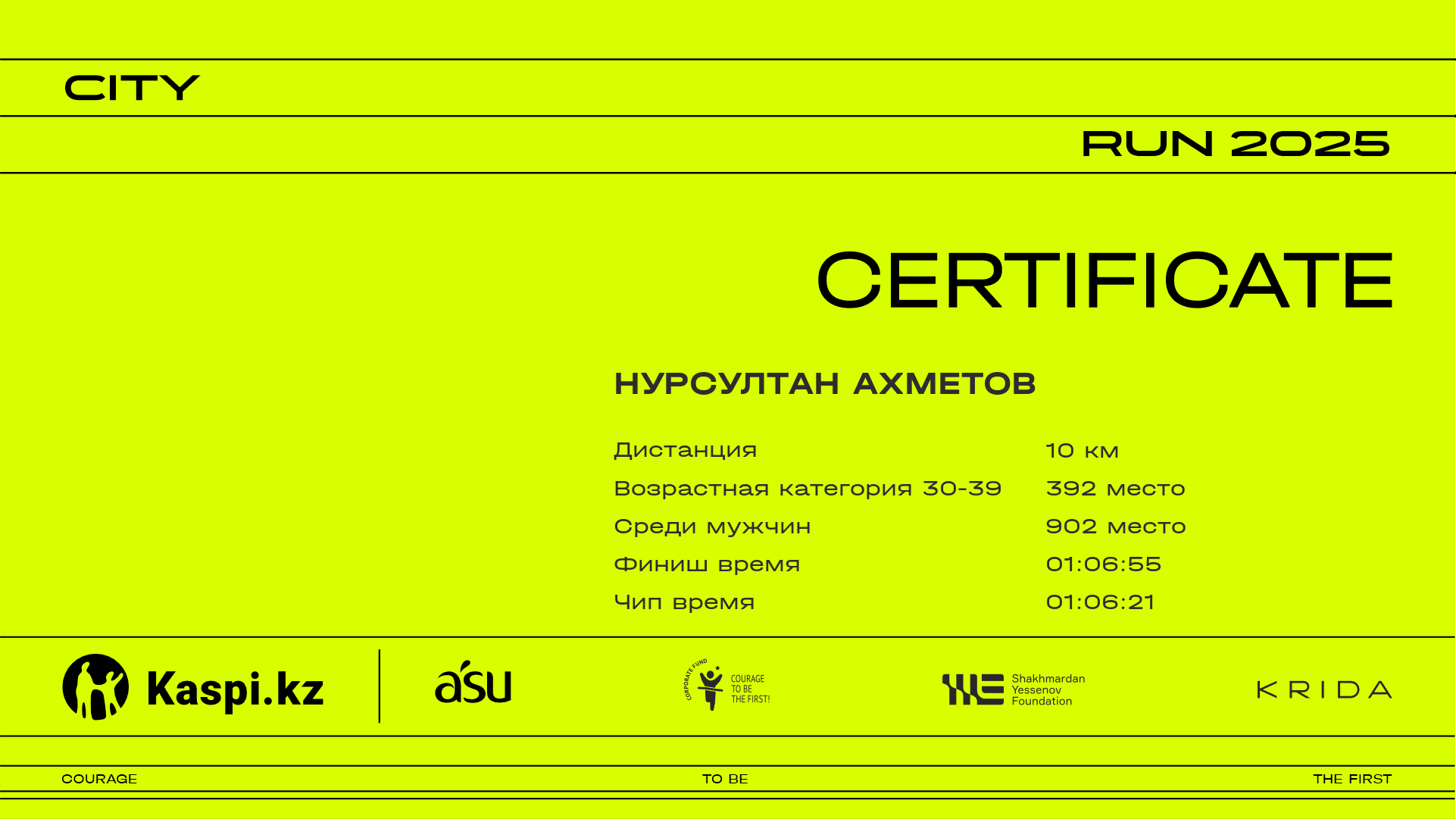 | 843 | Алихан Татамбай | ![]() | Караганда | 1130 | 00:12:21 | 00:22:51 | 00:34:57 | 00:47:44 | 00:56:37 | 00:57:53 | 00:57:39 | Скачать |