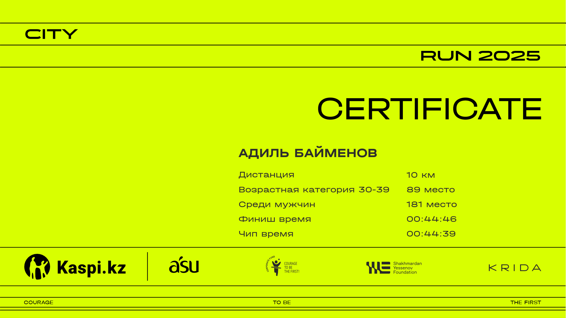 | 182 | Marat Nessipzhan | ![]() | Алматы | 2447 | 00:11:21 | 00:19:08 | 00:27:41 | 00:36:27 | 00:43:06 | 00:44:06 | 00:43:46 | Скачать |