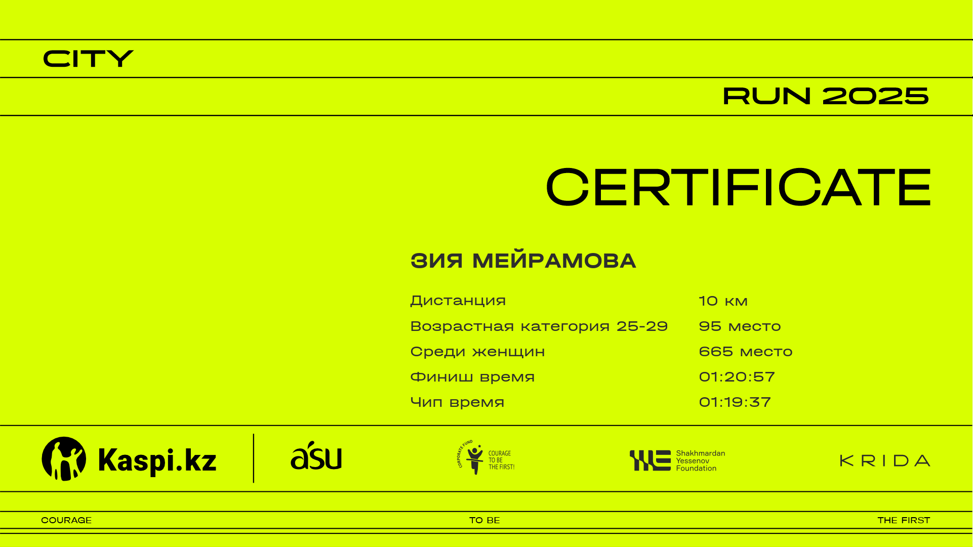 | 1267 | Аружан Абитова | ![]() | Алматы | 27 | 00:16:13 | 00:28:15 | 00:41:22 | 00:54:31 | 01:04:44 | 01:06:05 | 01:06:00 | Скачать |