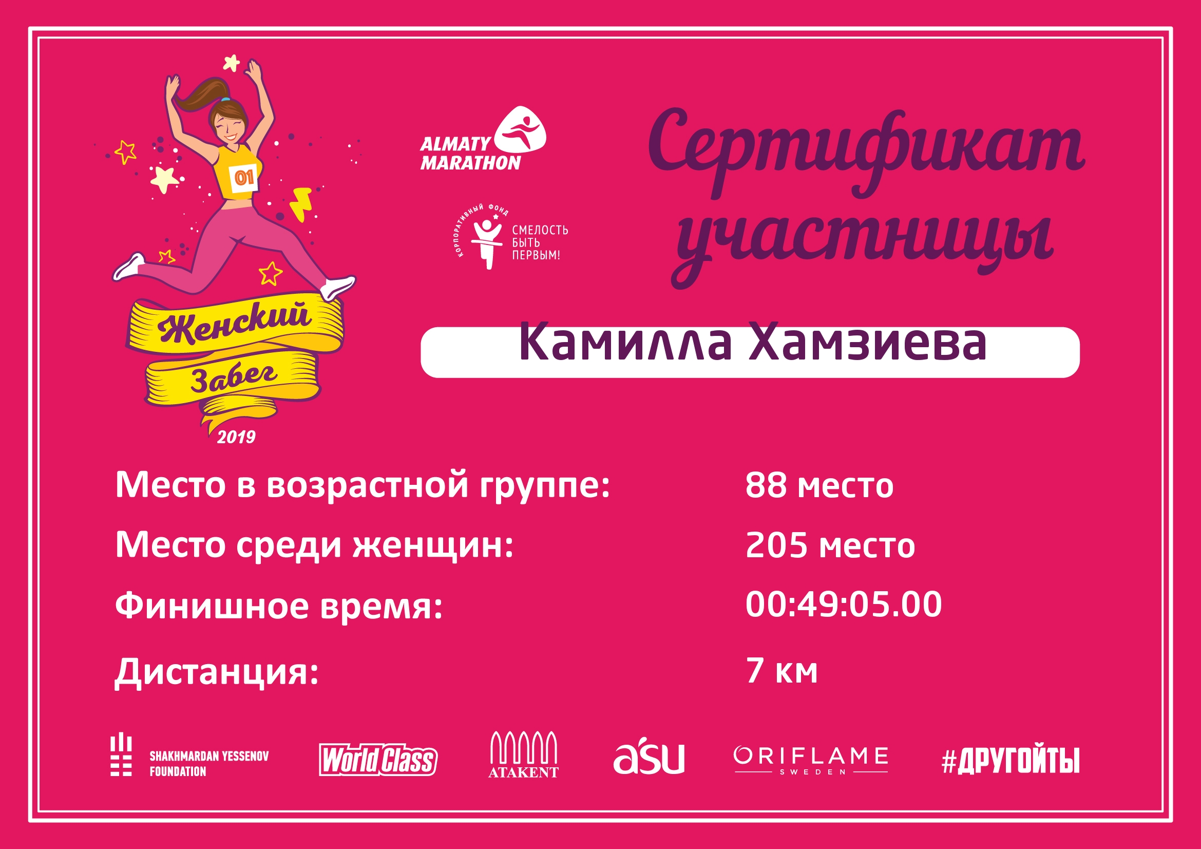 Место в возрастной категории среди женщин: