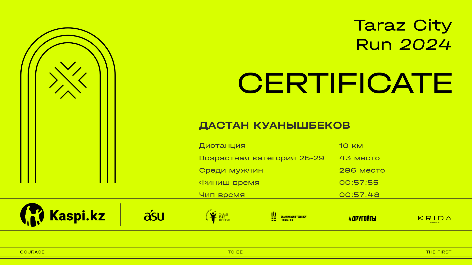| 528 | Асыл Жетпісбаев | ![]() | Тараз | 570 | 00:18:50.00 | 00:37:35.80 | 00:57:20.80 | 01:18:07.50 | 01:17:57.70 | Скачать |