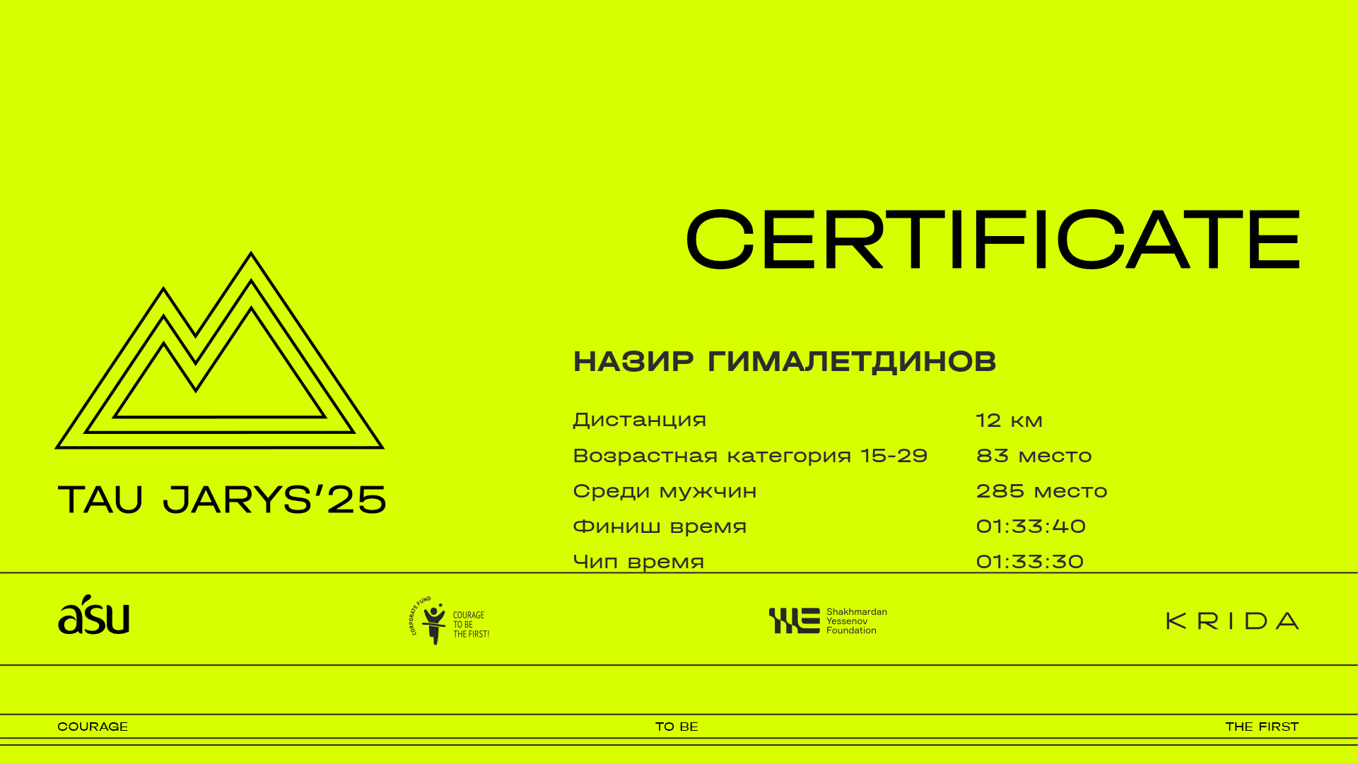 | 334 | Абылай Шарип | ![]() | Алматы | 213 | 00:10:47.10 | 00:27:27.40 | 00:36:12.90 | 00:56:22.90 | 01:15:17.60 | 01:25:05.50 | 01:33:33.70 | 01:33:16.10 | Скачать |