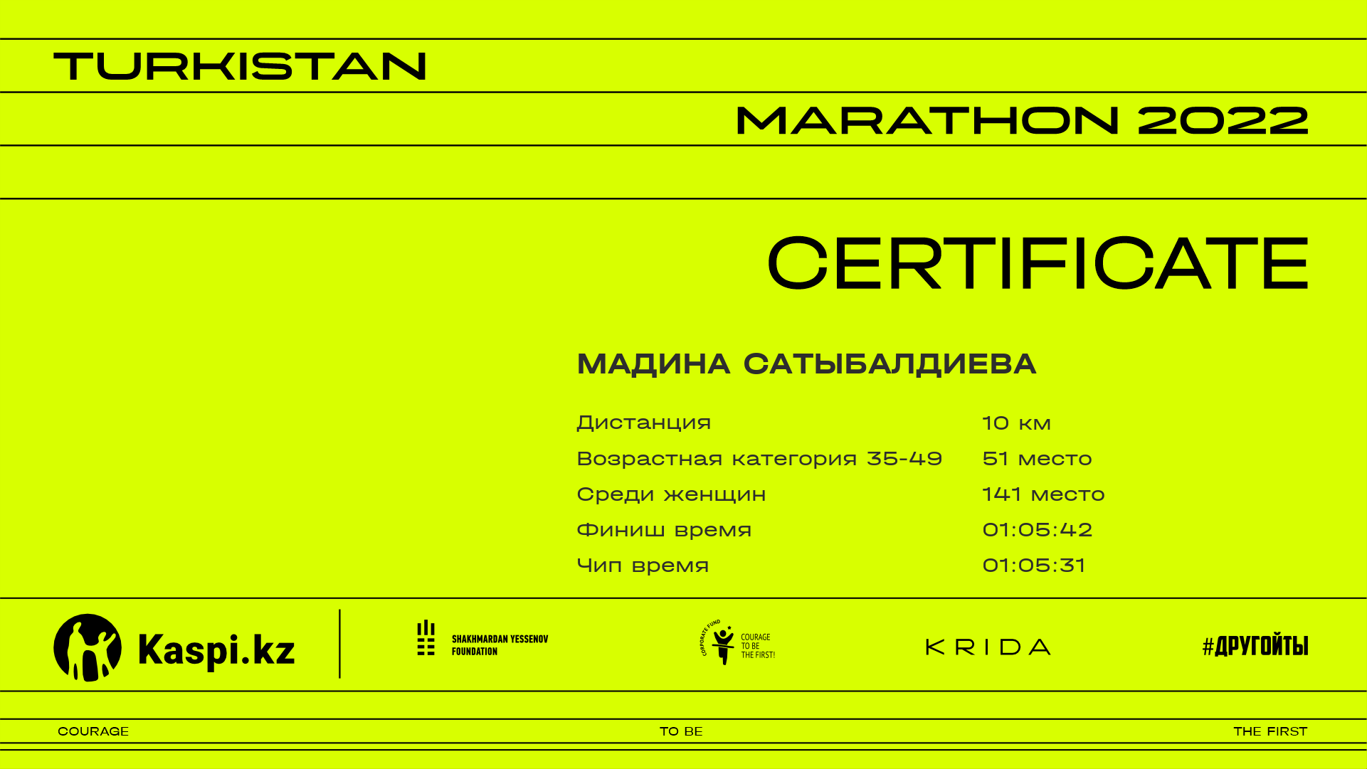 | 445 | Dana Yerzhanova | ![]() | Nur-Sultan | 1001 | 00:31:52.75 | 01:05:53.69 | 01:05:53.69 | Скачать |