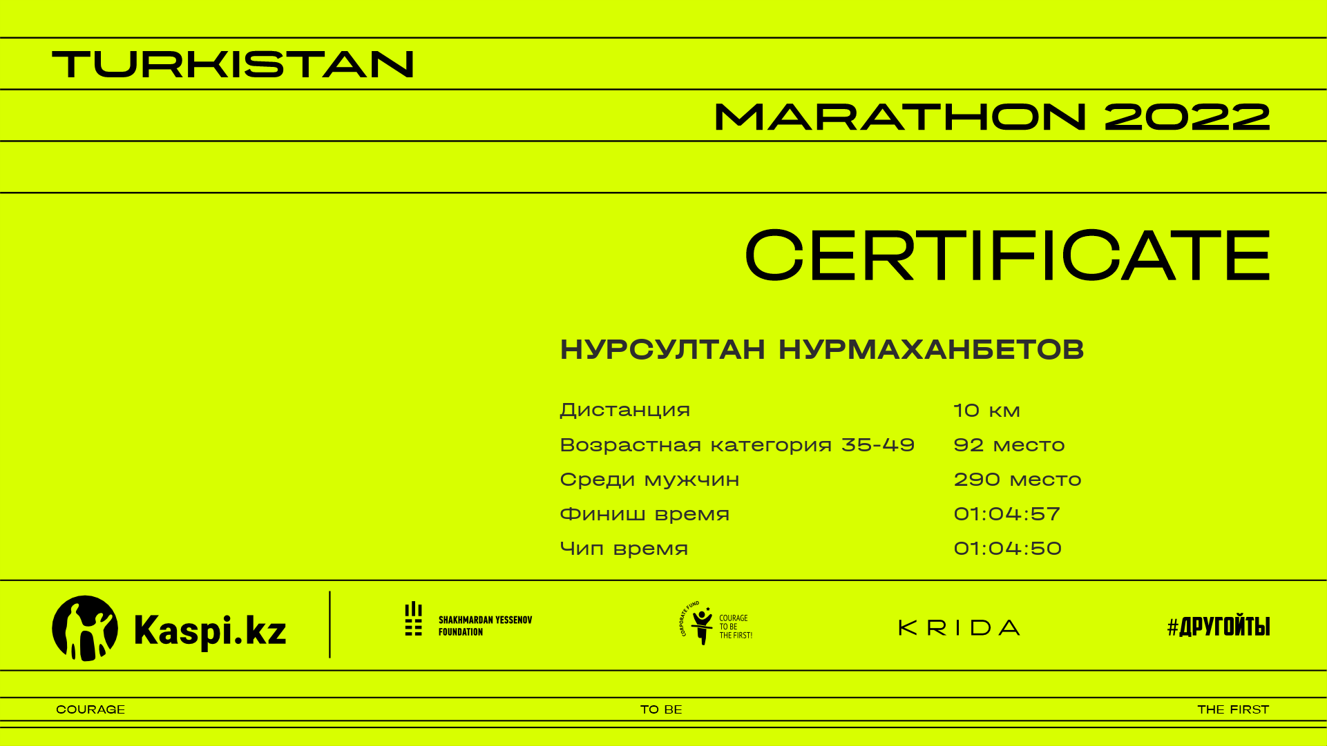 | 419 | Нурсултан Нурмаханбетов | ![]() | Шымкент | 1710 | 00:30:16.15 | 01:04:57.68 | 01:04:50.80 | Скачать |