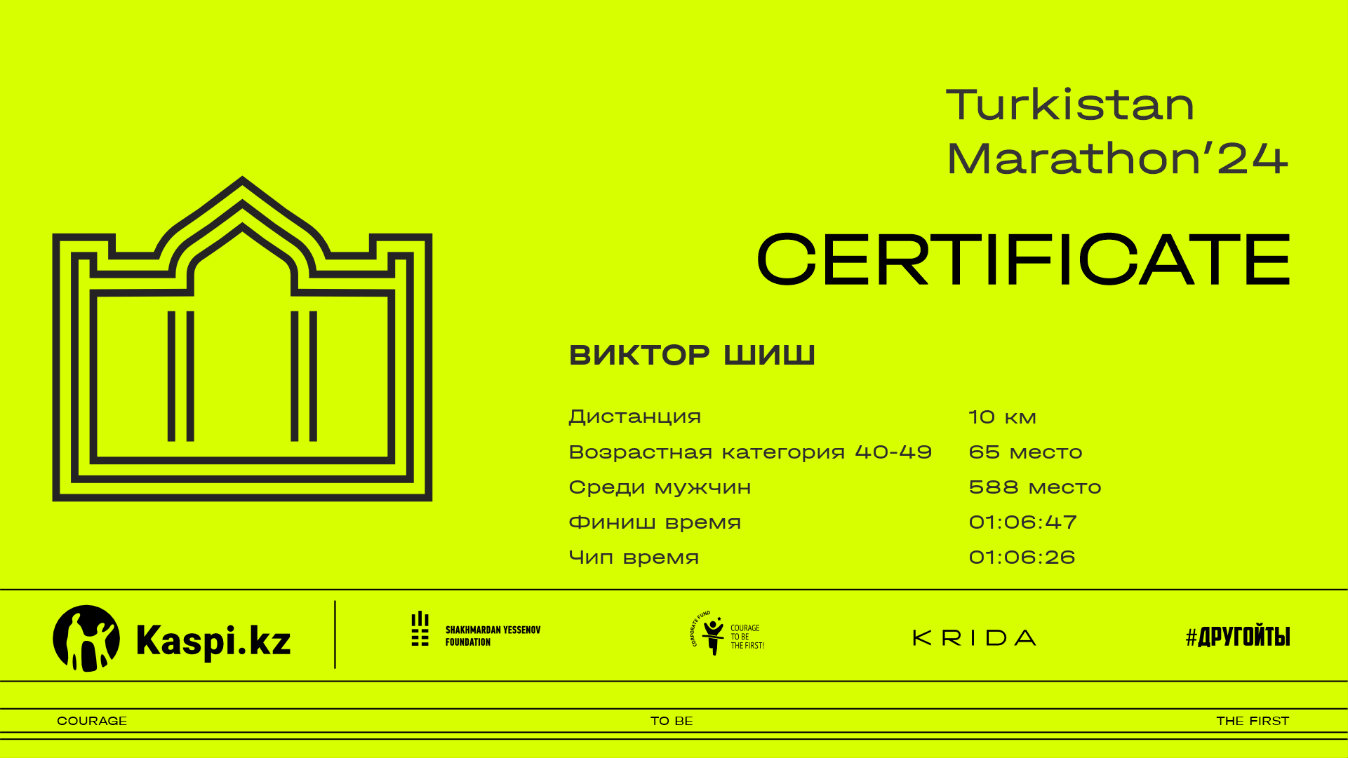 | 810 | Жанузак Адиханов | ![]() | Шымкент | 1791 | 00:31:10 | 01:07:03 | 01:06:21 | Скачать |