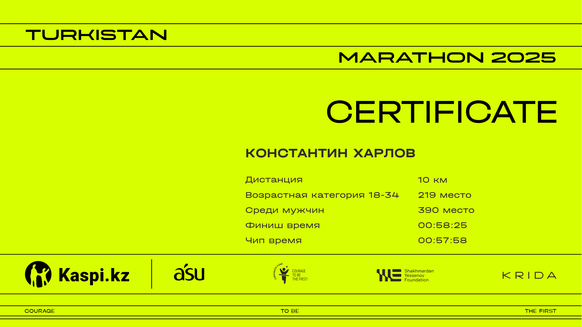 | 530 | Константин Харлов | ![]() | Алматы | 1662 | 00:37:01 | 00:58:25 | 00:57:58 | Скачать |