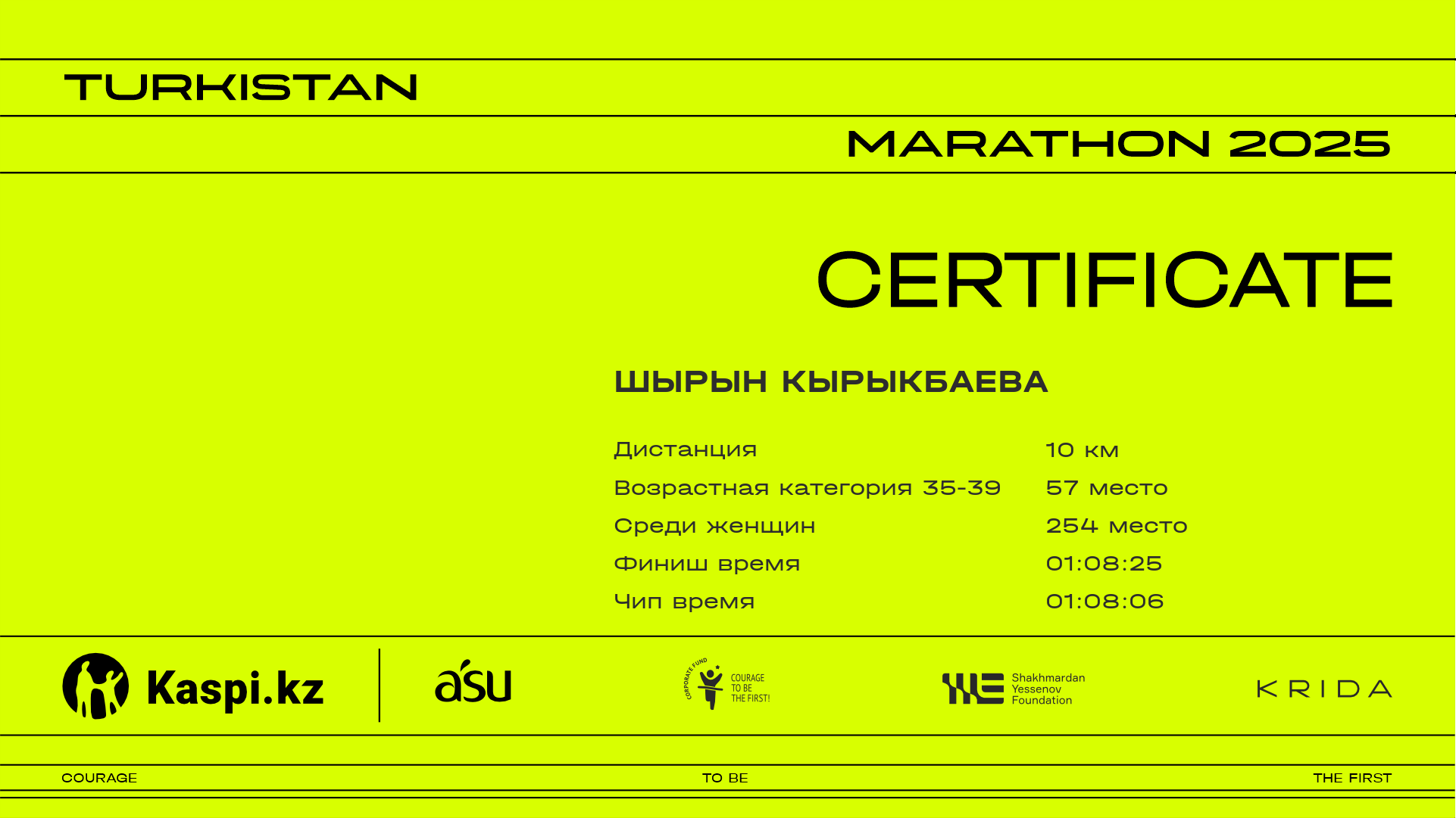 | 353 | Bauyrzhan Gaisa | ![]() | Алматы | 2007 | 00:34:29 | 00:53:54 | 00:53:10 | Скачать |
