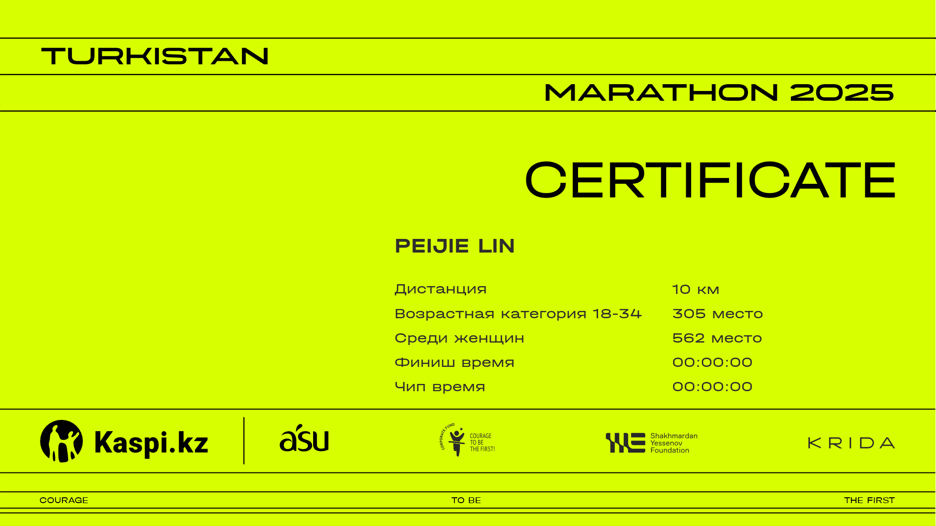 | Место | Участник | Страна | Город | Номер | 6.25 km | Финиш | Чип время | Сертификат |