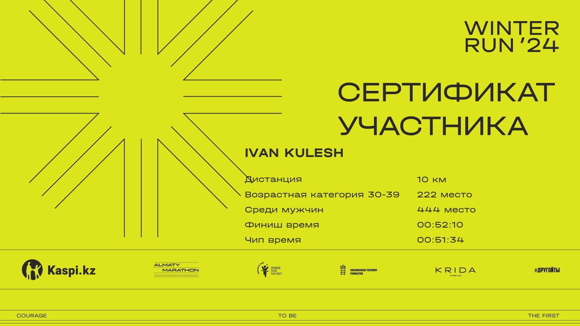 | 514 | Ivan Kulesh | ![]() | Алматы | 1598 | 00:07:51 | 00:26:58 | 00:44:21 | 00:52:10 | 00:51:34 | Скачать |