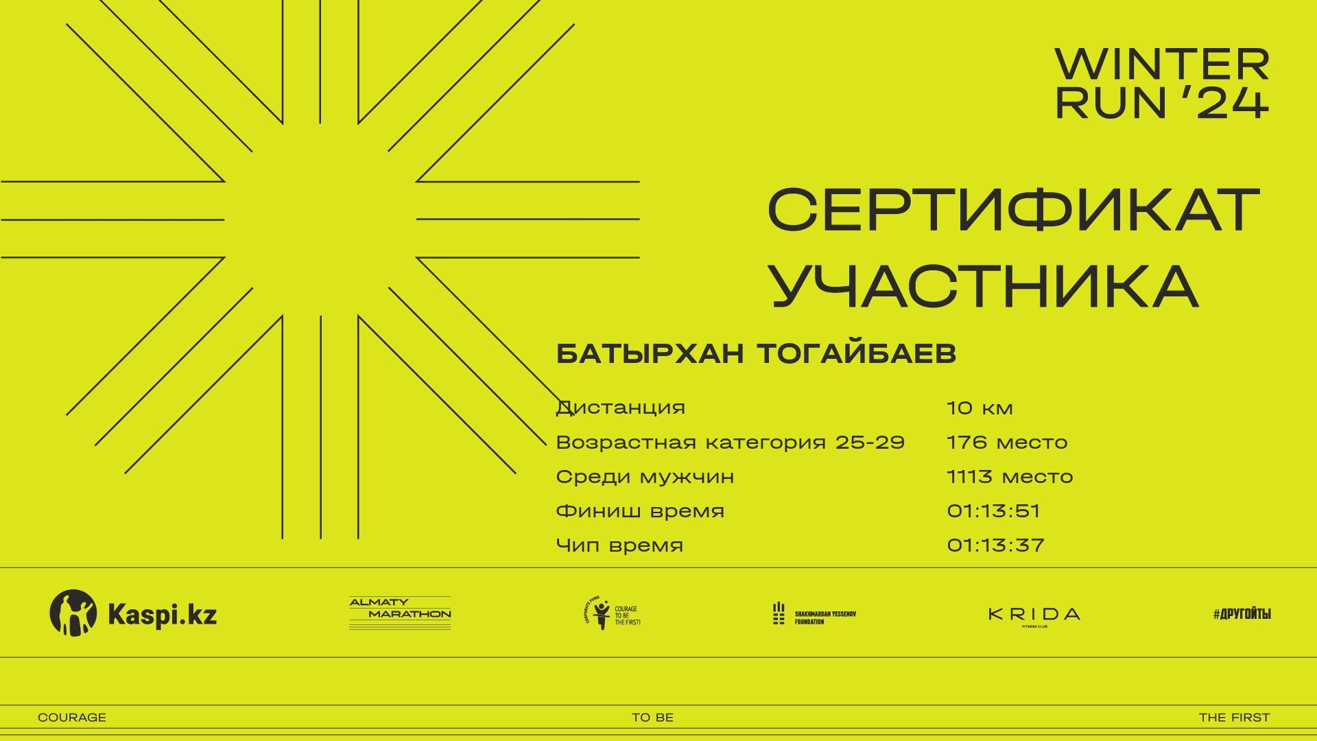 | 1526 | Батырхан Тогайбаев | ![]() | Алматы | 634 | 00:10:16 | 00:38:24 | 01:02:31 | 01:13:51 | 01:13:37 | Скачать |
