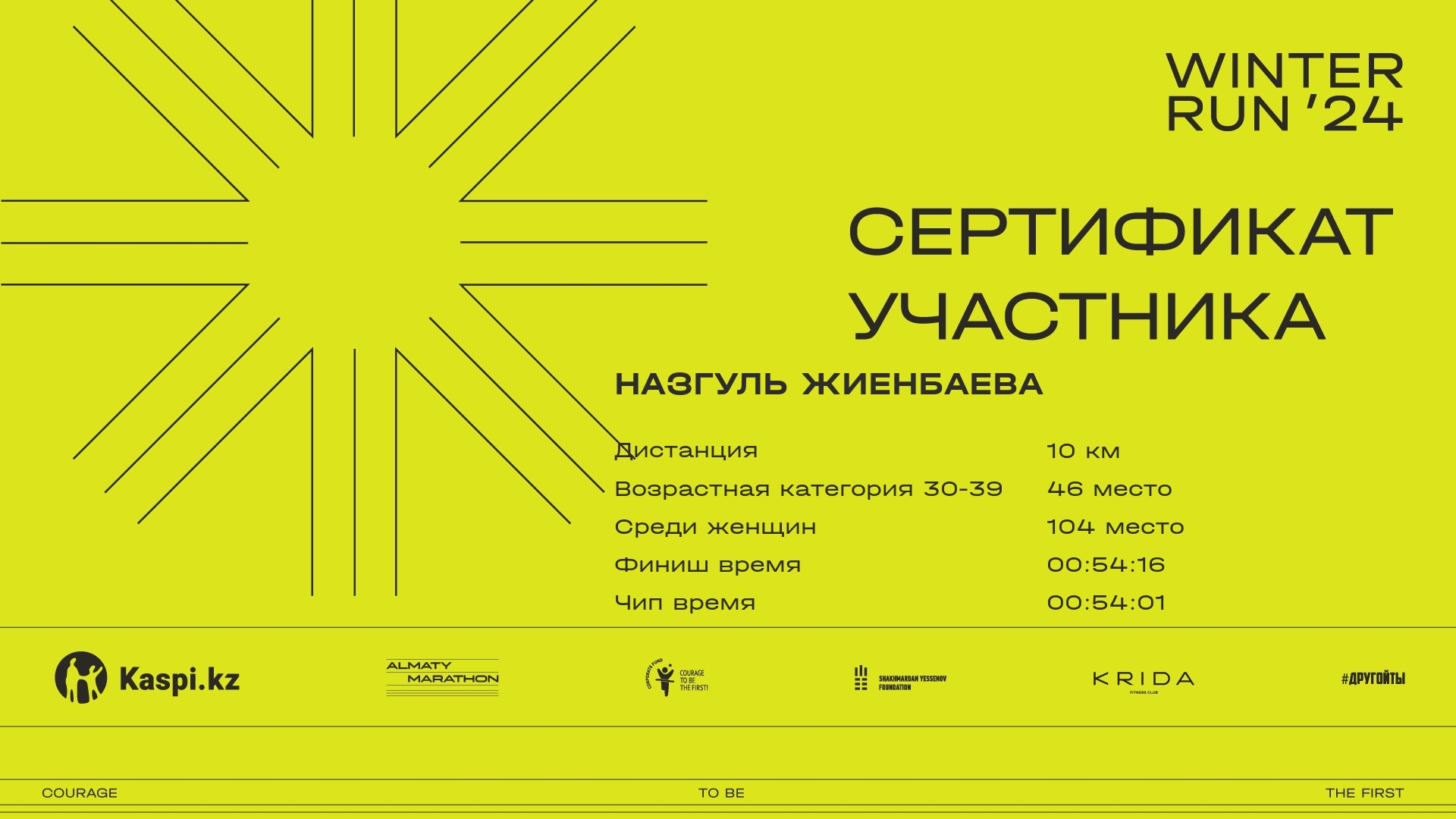 | 648 | Zarina Sakhanova | ![]() | Almaty | 427 | 00:09:20 | 00:28:57 | 00:46:02 | 00:54:27 | 00:53:24 | Скачать |