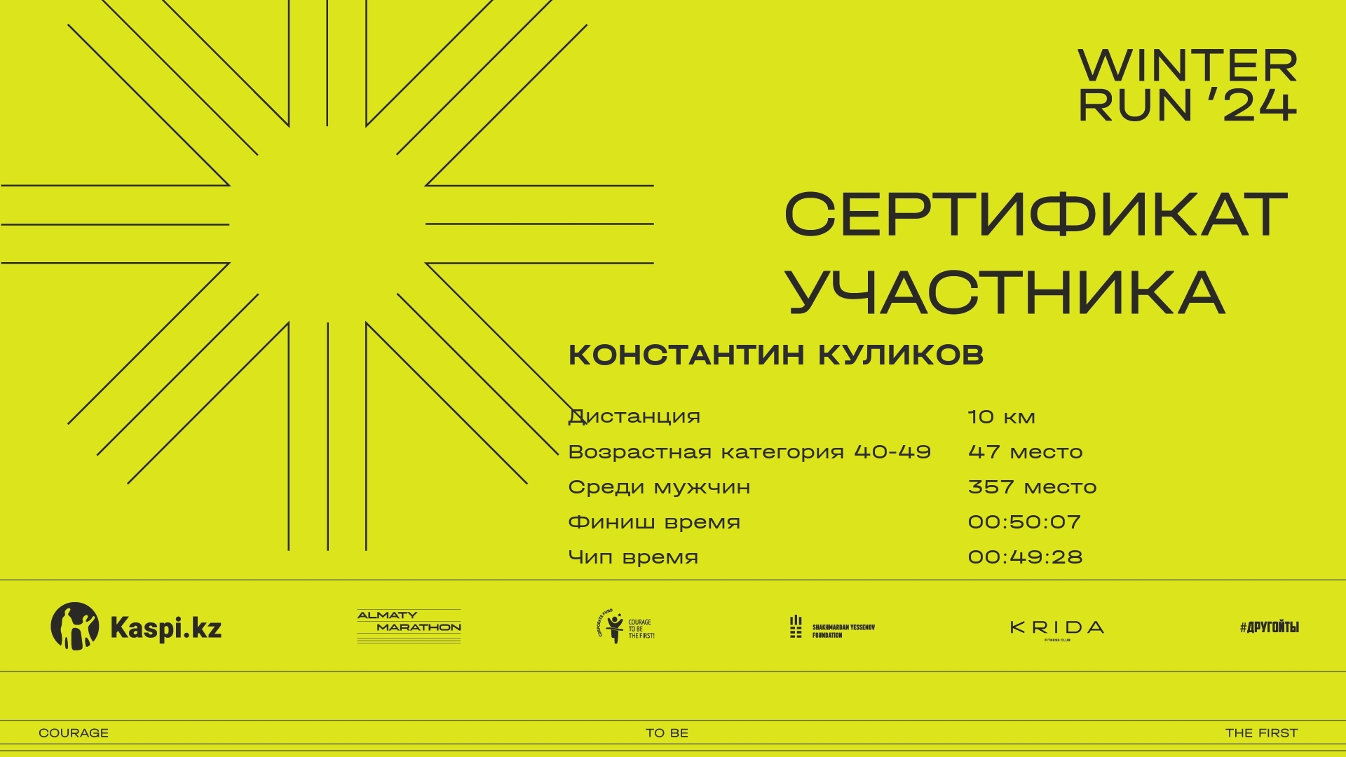 | 369 | Нурислан Жумагалиев | ![]() | Алматы | 1922 | 00:07:08 | 00:25:39 | 00:41:35 | 00:49:33 | 00:49:22 | Скачать |