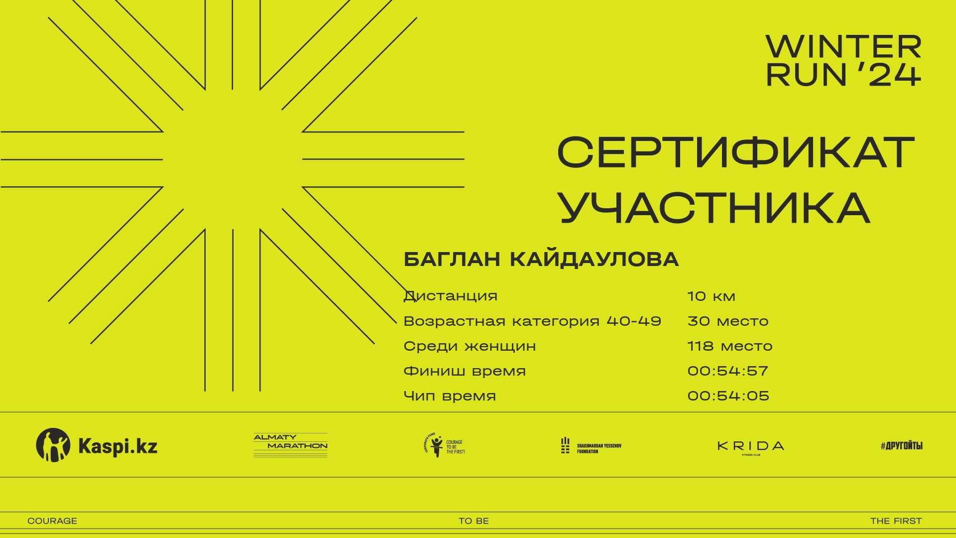 | 68 | Даян Сансызбаев | ![]() | Шымкент | 1453 | 00:05:52 | 00:20:18 | 00:33:37 | 00:39:45 | 00:39:42 | Скачать |