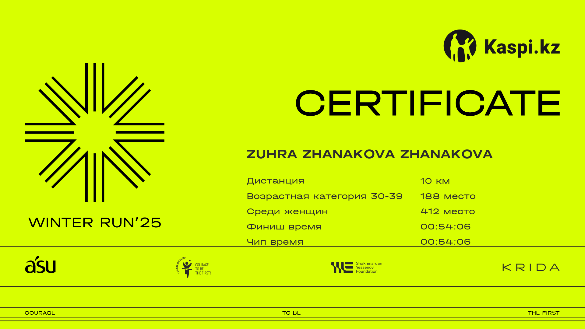 | 1325 | Orynbassar Tumenbayeva | ![]() | Алматы | 522 | 00:30:06 | 00:54:44 | 01:14:11 | 01:13:33 | Скачать |