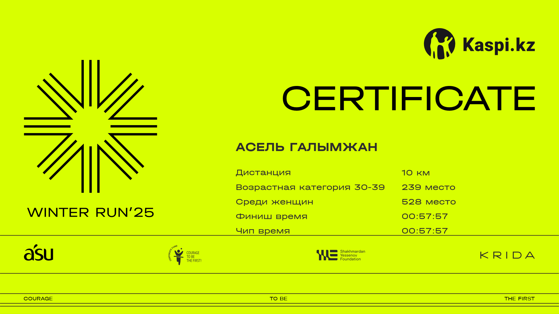 | 246 | Bakyt Mailybayeva | ![]() | Алматы | 1574 | 00:19:50 | 00:35:01 | 00:48:02 | 00:47:55 | Скачать |