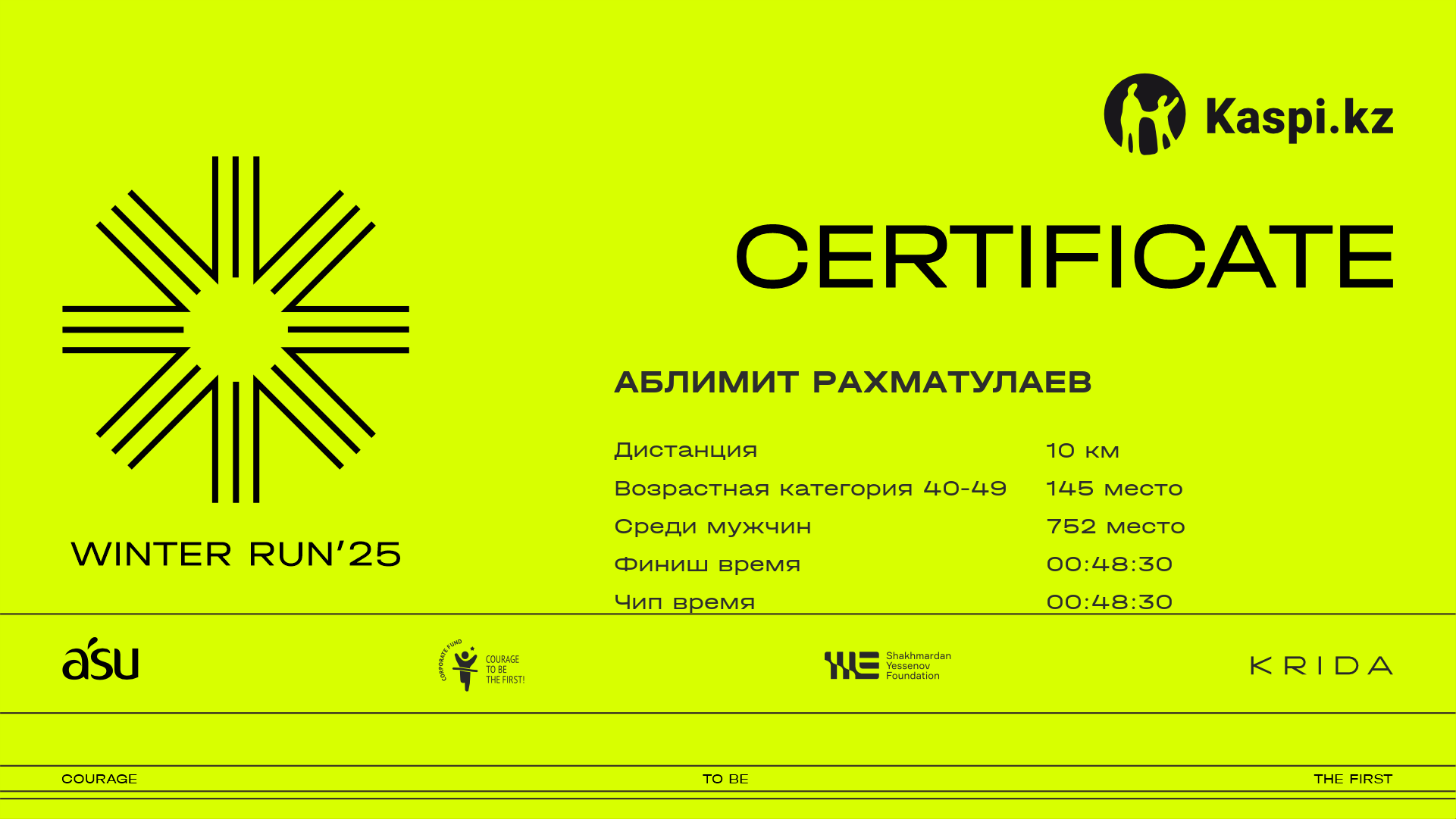 | 948 | Zhandos Sakhiyev | ![]() | Алматы | 753 | 00:25:52 | 00:46:10 | 01:03:29 | 01:03:11 | Скачать |
