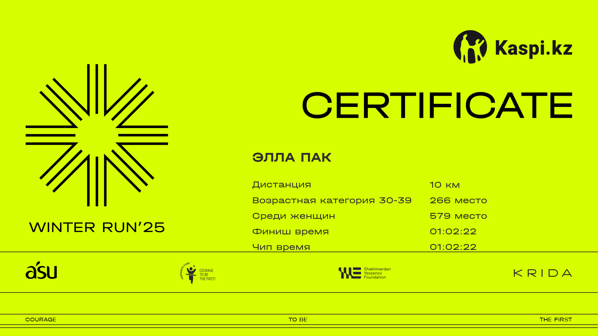| 1574 | Динара Затилда | ![]() | Алматы | 1138 | 00:33:13 | 01:03:38 | 01:29:23 | 01:28:48 | Скачать |
