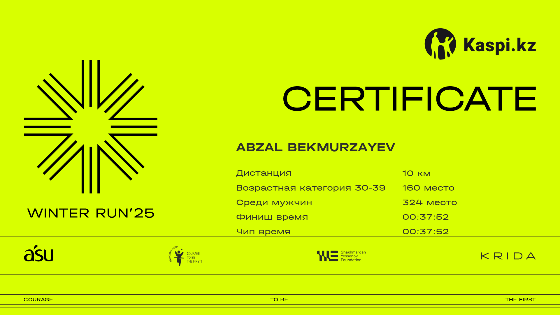 | 389 | ABZAL BEKMURZAYEV | ![]() | Алматы | 671 | 00:21:37 | 00:37:52 | 00:51:47 | 00:51:32 | Скачать |