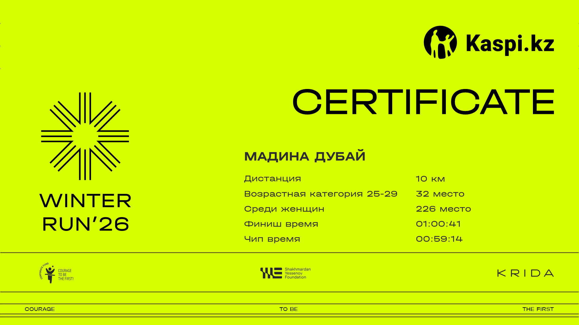 | 1449 | Ангелина Жирнова | ![]() | Алматы | 1706 | 00:10:58.07 | 00:36:04.57 | 00:56:41.16 | 01:06:49.20 | 01:05:18.39 | Скачать |