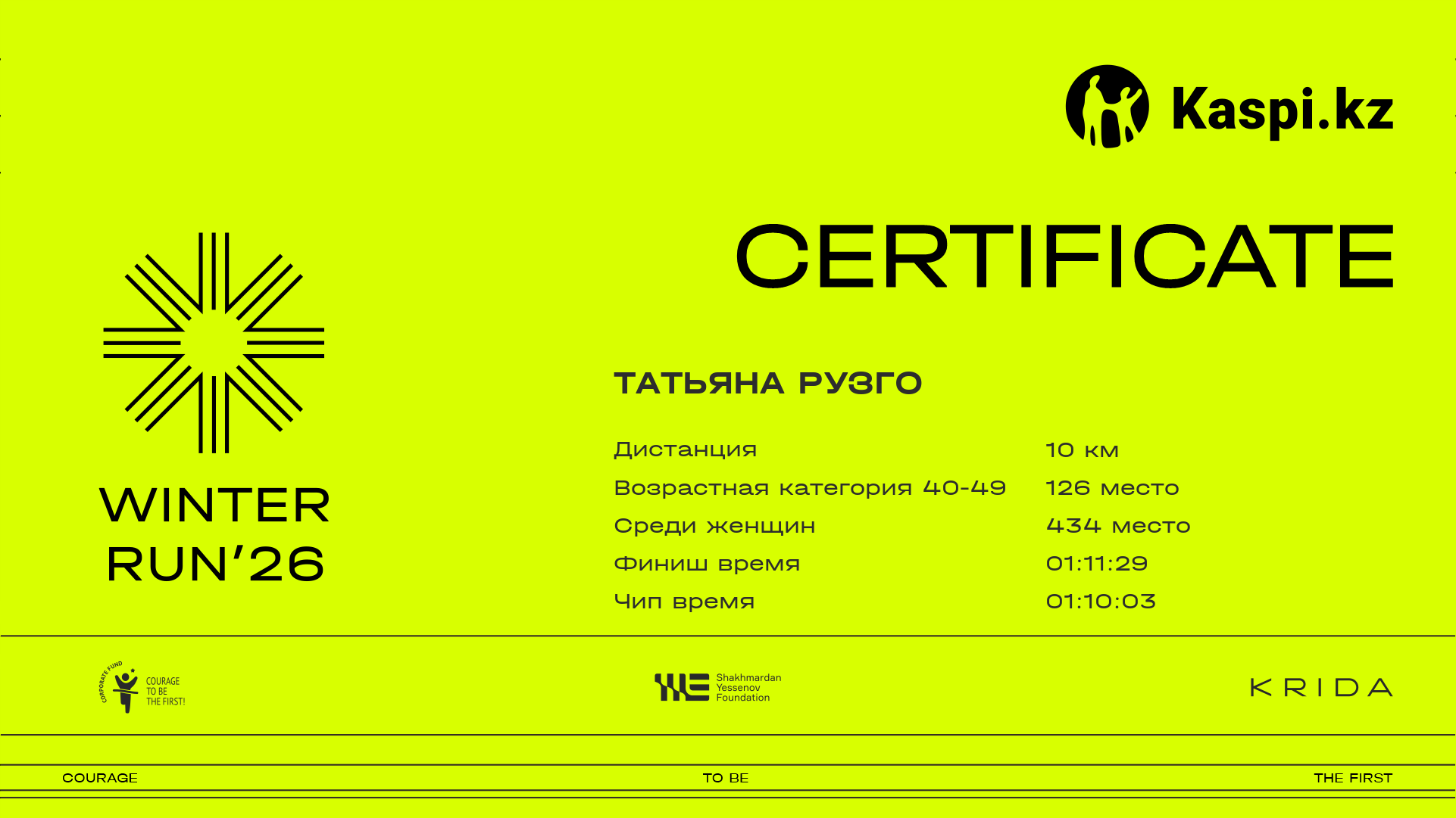 | 603 | Татьяна Родионова | ![]() | Караганда | 1288 | 00:07:46.08 | 00:26:51.45 | 00:44:14.42 | 00:51:58.34 | 00:51:20.08 | Скачать |