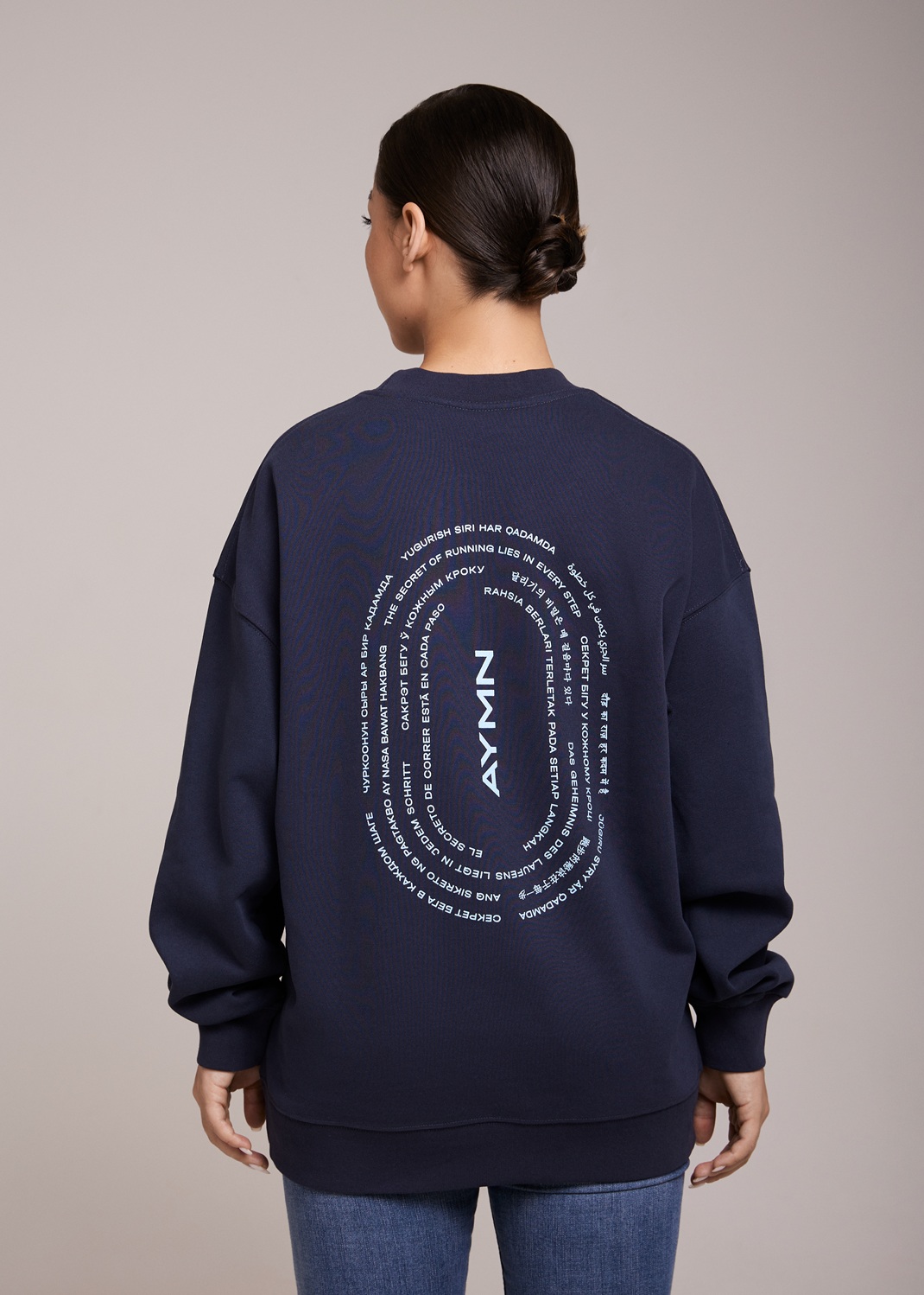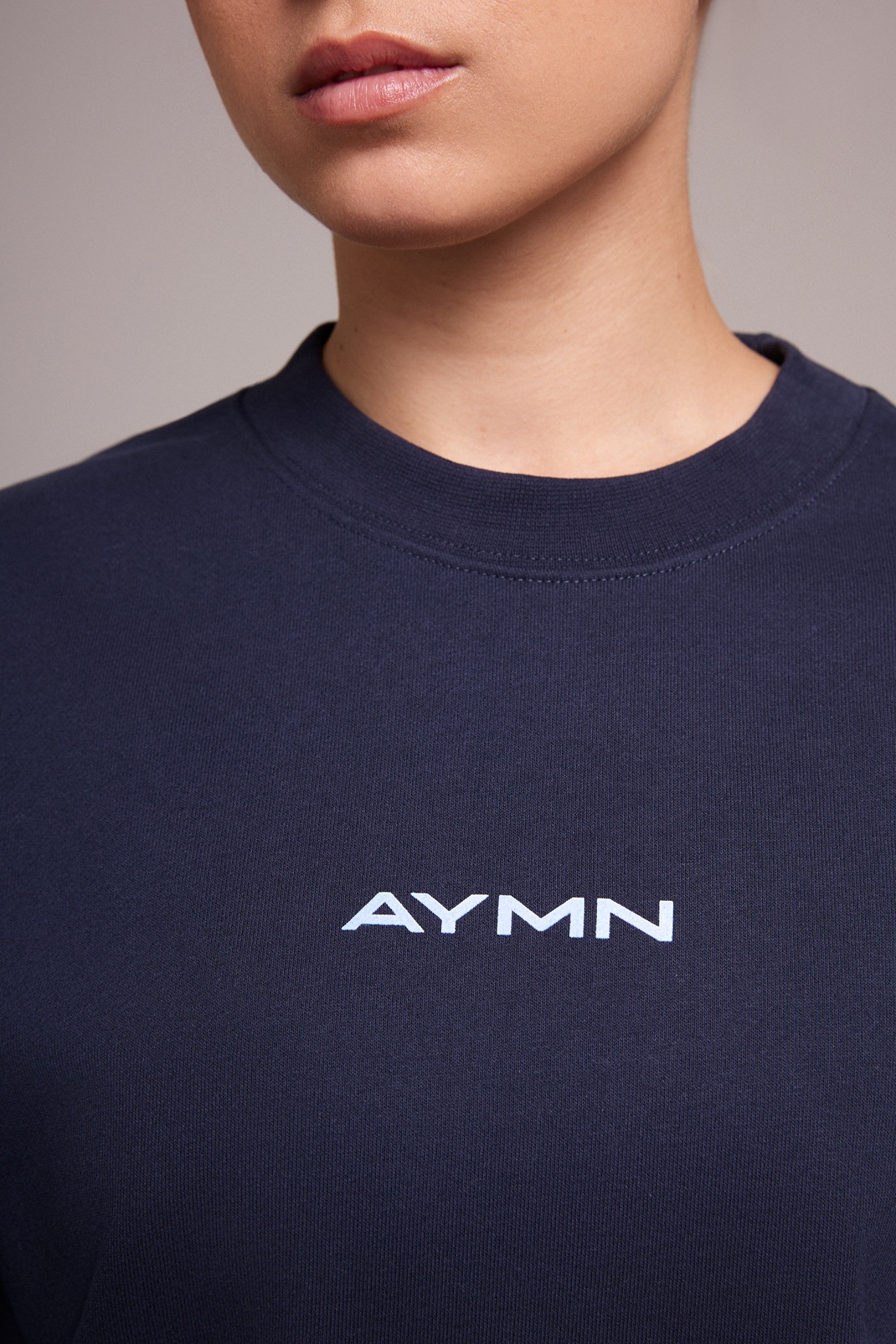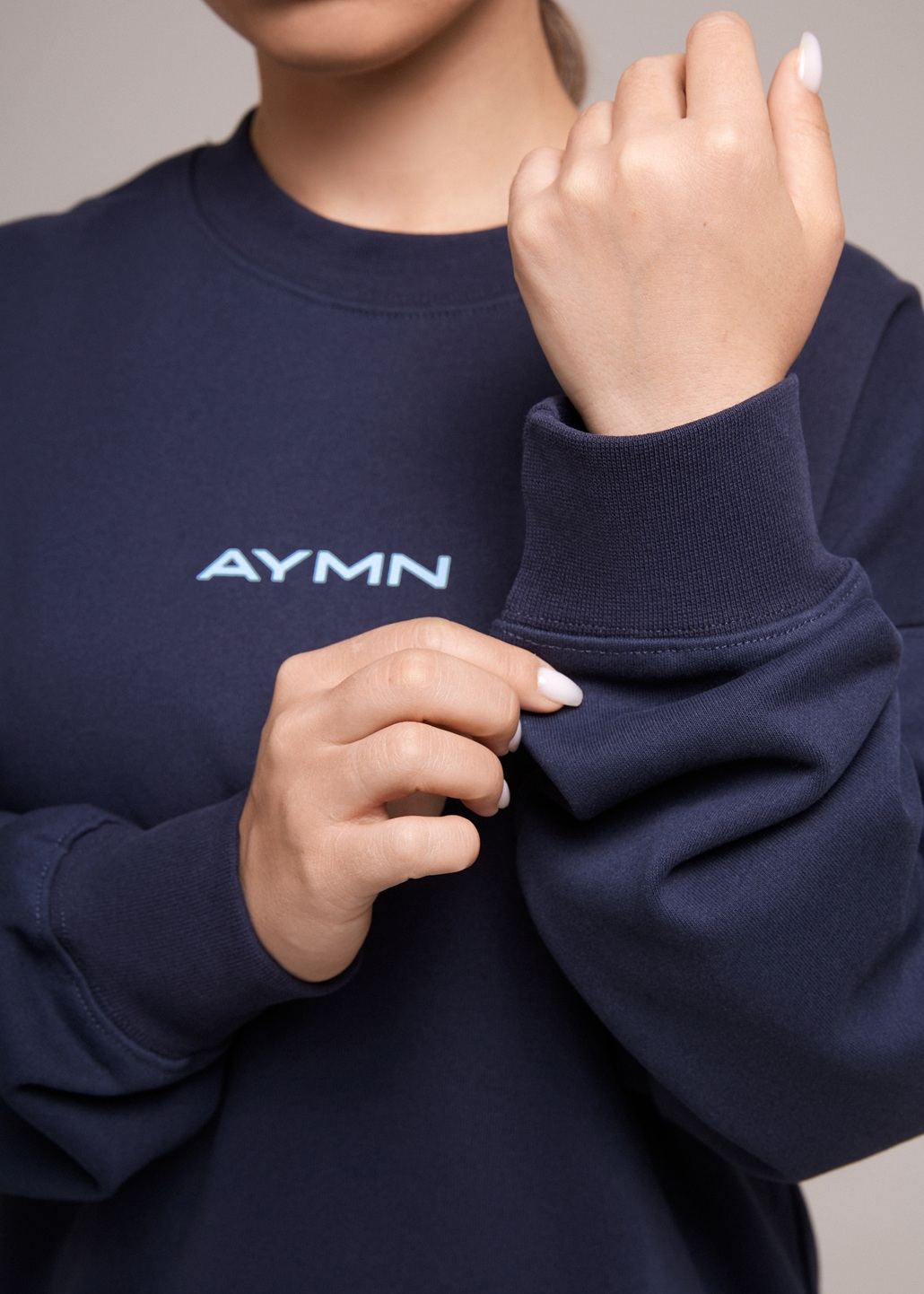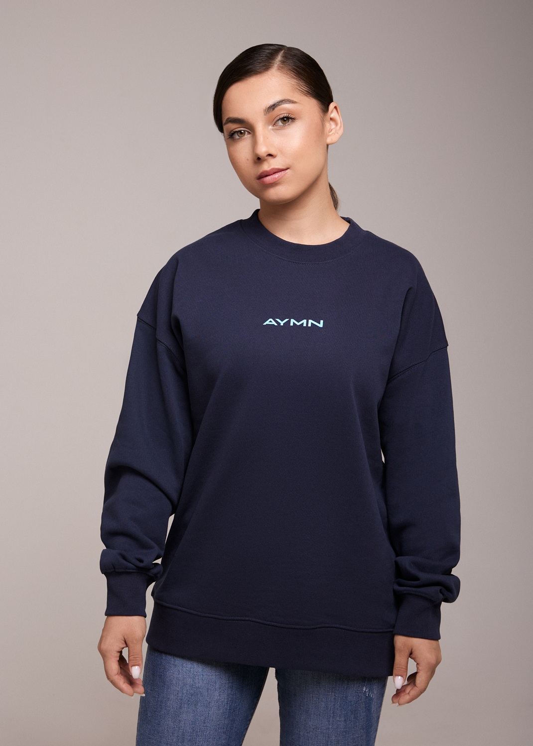 Свитшот темно-синего цвета изготовлен из высококачественного коттона, обеспечивает комфортное прилегание и не стесняет движений.